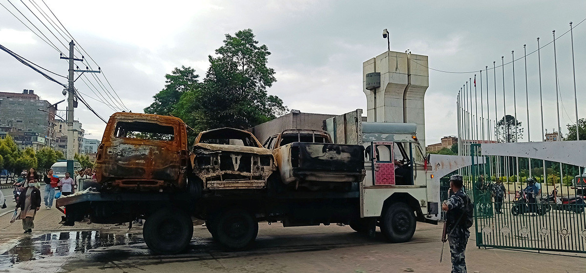 Beginning Thursday, the MoHA started transferring the burned vehicles to the Parliament building premises in New Baneshwor for storage.