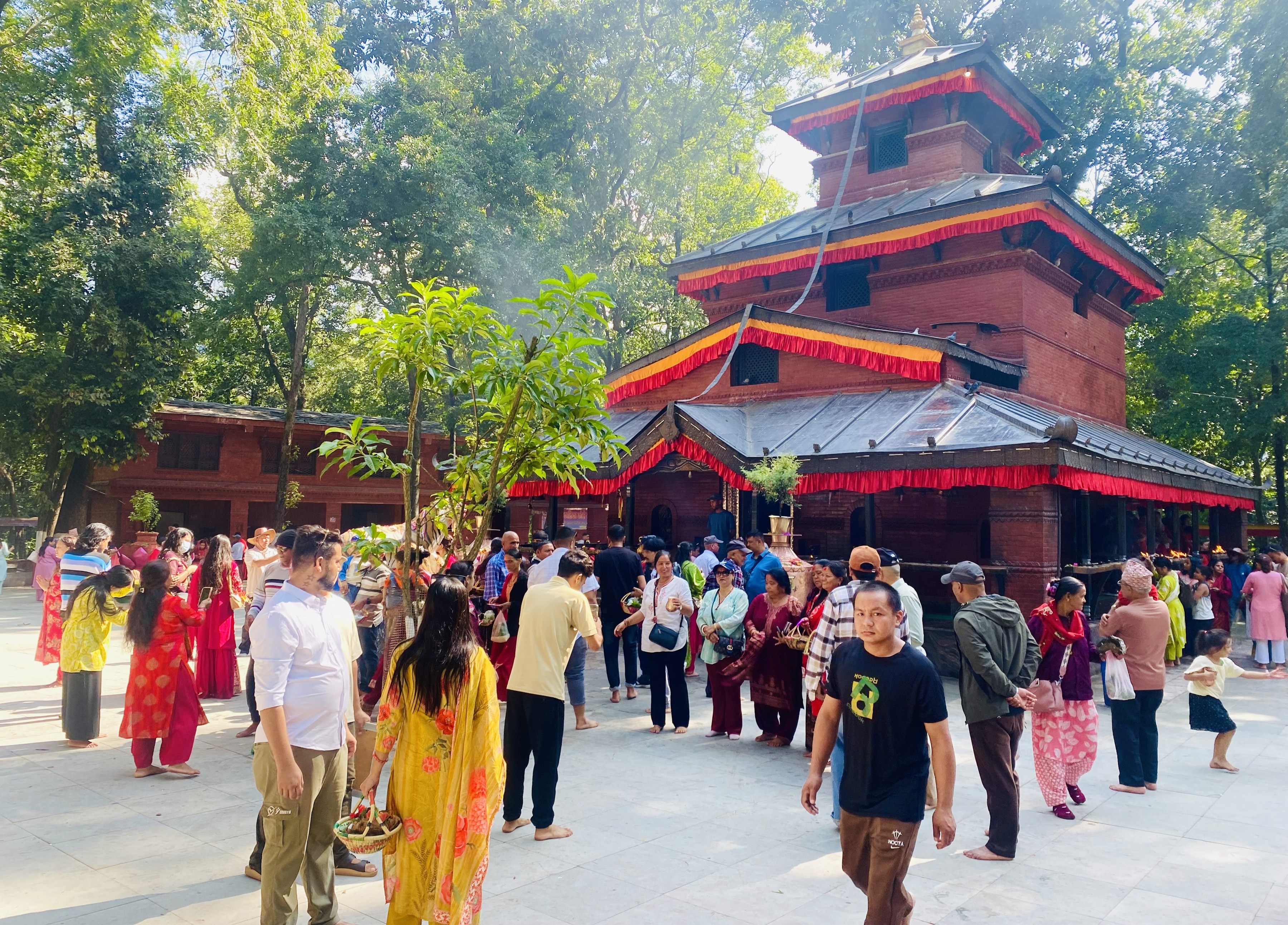 A large crowd of devotees could be seen at the Bhadrakali temple, Guheshwari temple, Maitidevi temple, among other shrines, to pay homage to the goddesses.