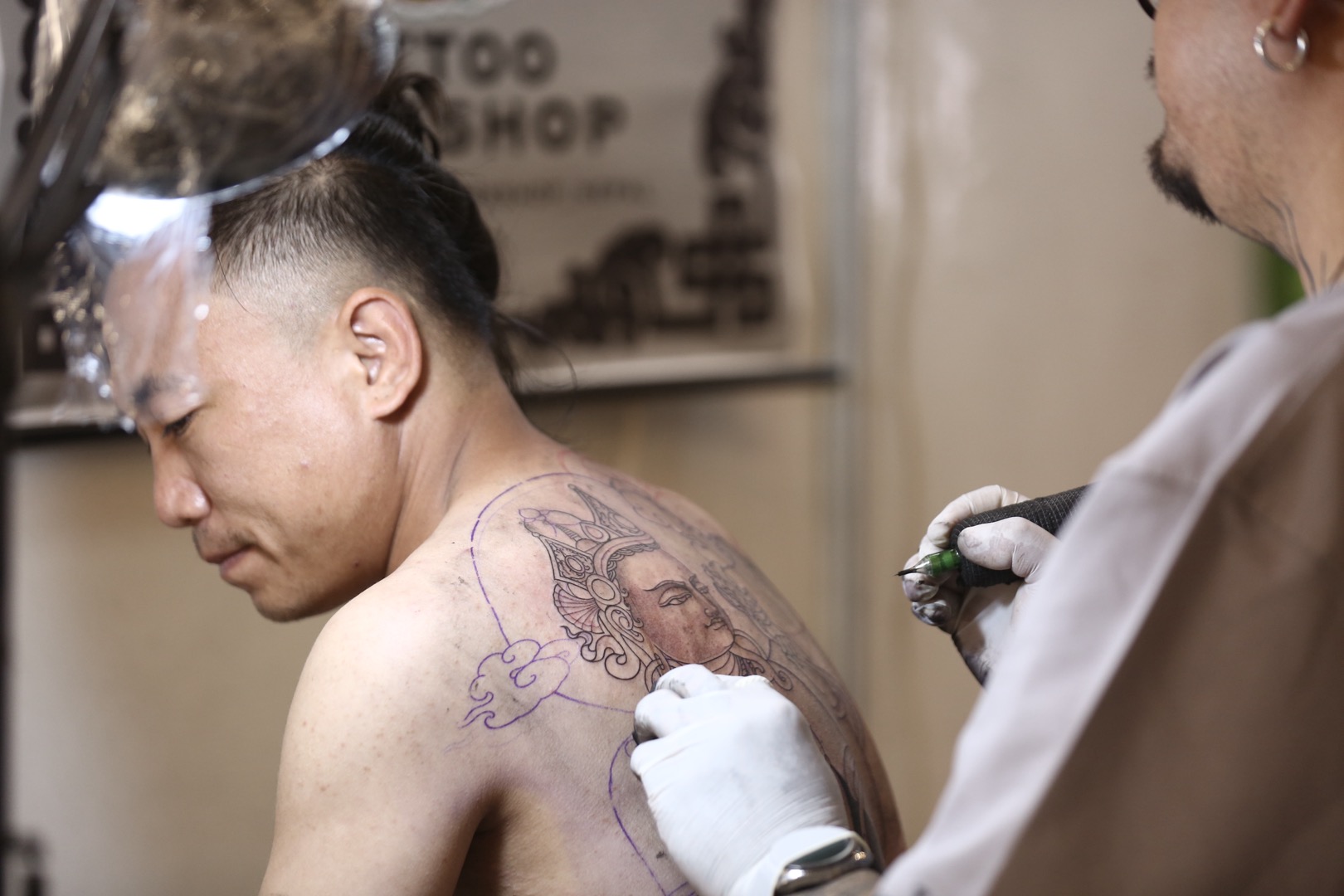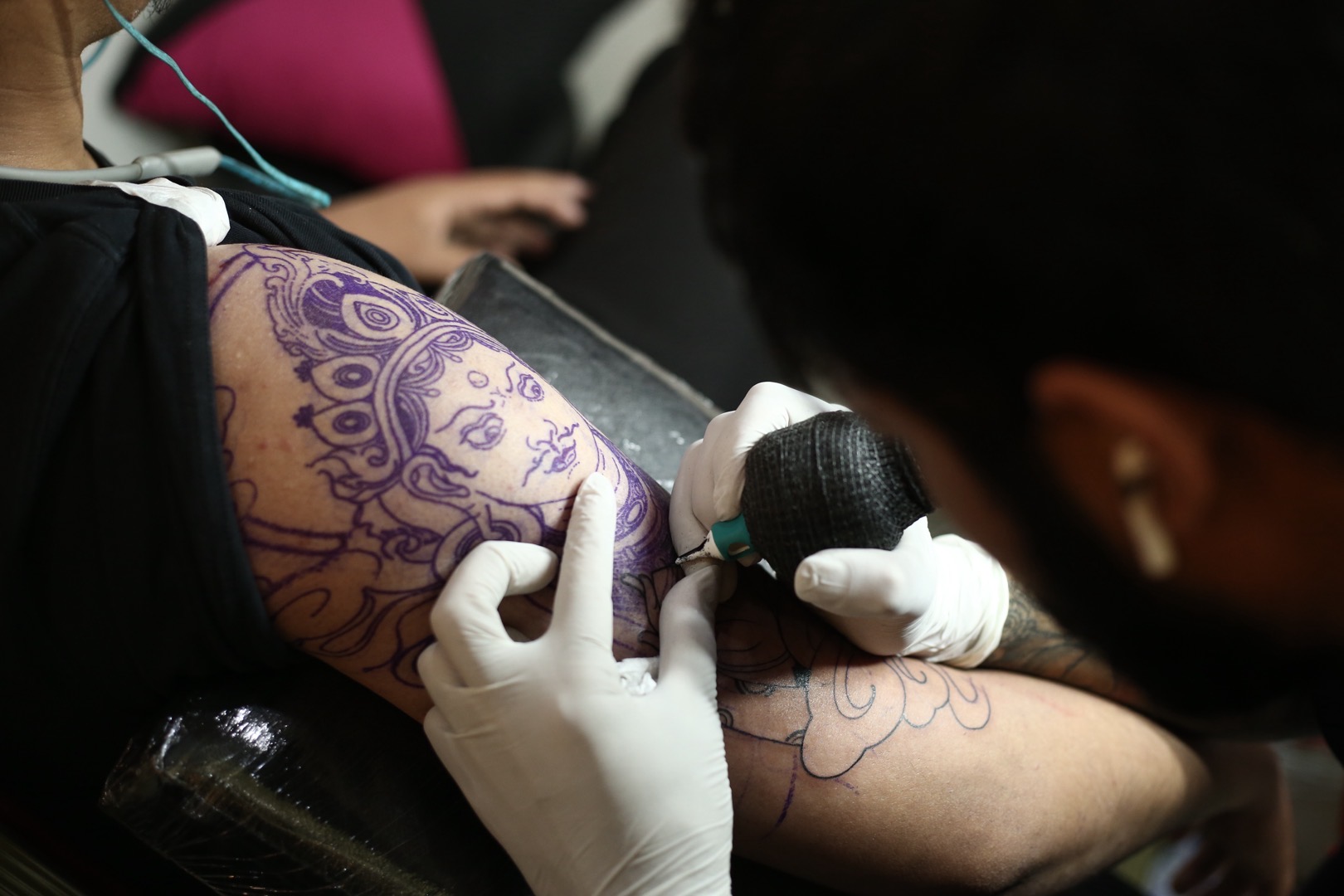 Here are some photos of people getting their bodies inked by renowned international tattoo artists taken by Republica’s Photojournalist Dipesh Darshandhari: