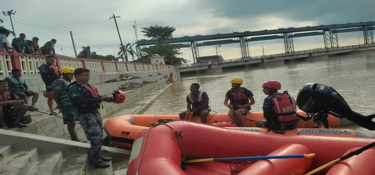 On Thursday afternoon, during a provincial-level disaster simulation exercise as a monsoon preparedness measure in the Koshi River at Hanumannagar Kankalini Municipality-1 of Saptari, two Armed Police Force divers, Suraj Saud and Hardev Rajbanshi, went missing.