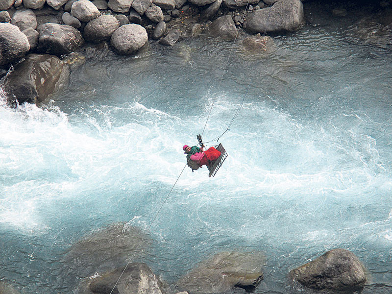 The Karnali provincial government has invested Rs 15 million in the project and has promised to eliminate all tuins in the province by the end of this fiscal year. But progress has been slow. Although 108 of the 137 tuins nationwide have reportedly been replaced, many people are still forced to use dangerously suspended ropes to cross rivers. Most remote villages in Karnali continue to wait for bridges, despite the government allocating funds and introducing favorable policies. In districts like Jumla and Humla, locals are compelled to use tuins in the absence of bridges, as rivers cut through villages and settlements. Women tie children to their backs and climb into corroded baskets that swing from wires. Men and women of all ages hang high above fast-moving rivers to reach markets, schools, or hospitals. The question is: Why has such a fundamental issue of public safety not been fully addressed, even a decade after the promise was made? One reason may be the rapid changes in government since 2015. In addition, coordination among federal, provincial, and local governments remains poor.