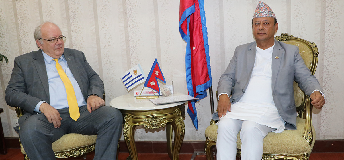 KATHMANDU, June 3: Uruguayan Non-Resident Ambassador to Nepal, Alberto A. Guani, met with Minister for Energy, Water Resources and Irrigation, Deepak Khadka, for a courtesy call.