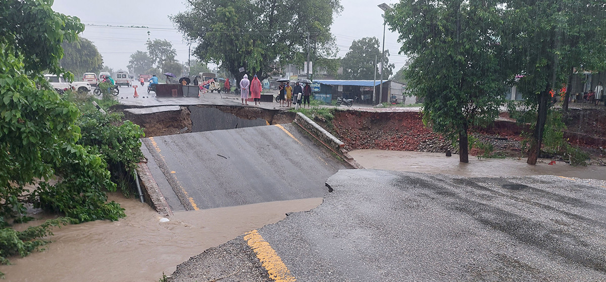 Information Officer at the District Police Office, Jhapa, Khagendra Bahadur Khadka, said the transport service has come to a halt after the flood washed away the road diversion, which is under construction as part of the Asian Highway.