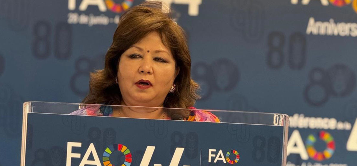 Addressing the 44th General Assembly of the United Nations Food and Agriculture Organization (FAO) held in Rome on Monday, she urged for ensuring grant-based international climate finance for Nepal, particularly for the mountainous regions, which are suffering from the impacts of climate change.