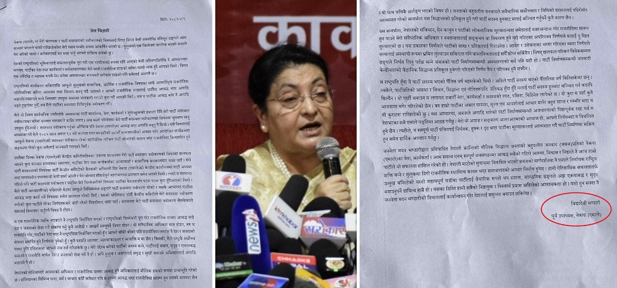 However, Bhandari has pushed back against these efforts. Speaking at a press conference at Karki Banquet in Baneshwor on Friday, she emphasized that she had spent 35 years in UML before assuming the presidency and identified herself first and foremost as a former party vice-chair.