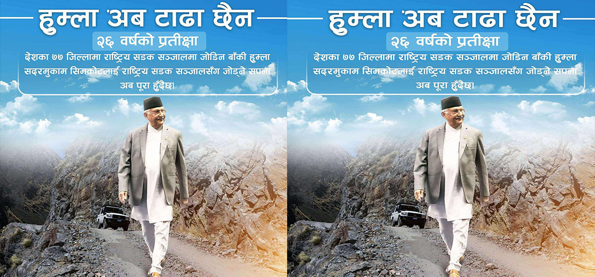 “For the past 26 years, I have dreamed of connecting Simkot, the district headquarters of Humla—the only remaining district among all 77—to the national road network. That dream is now being fulfilled,” Oli wrote.