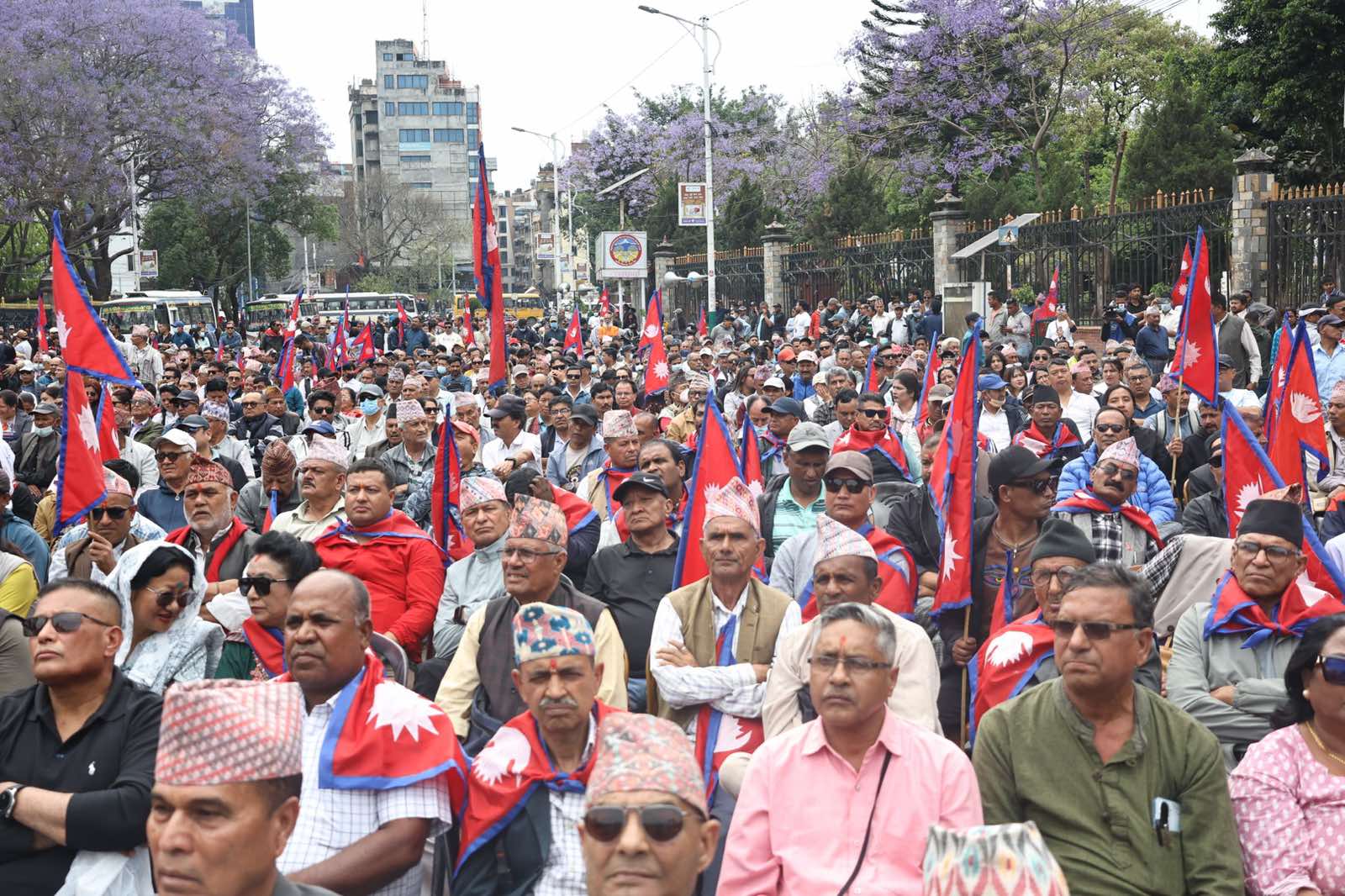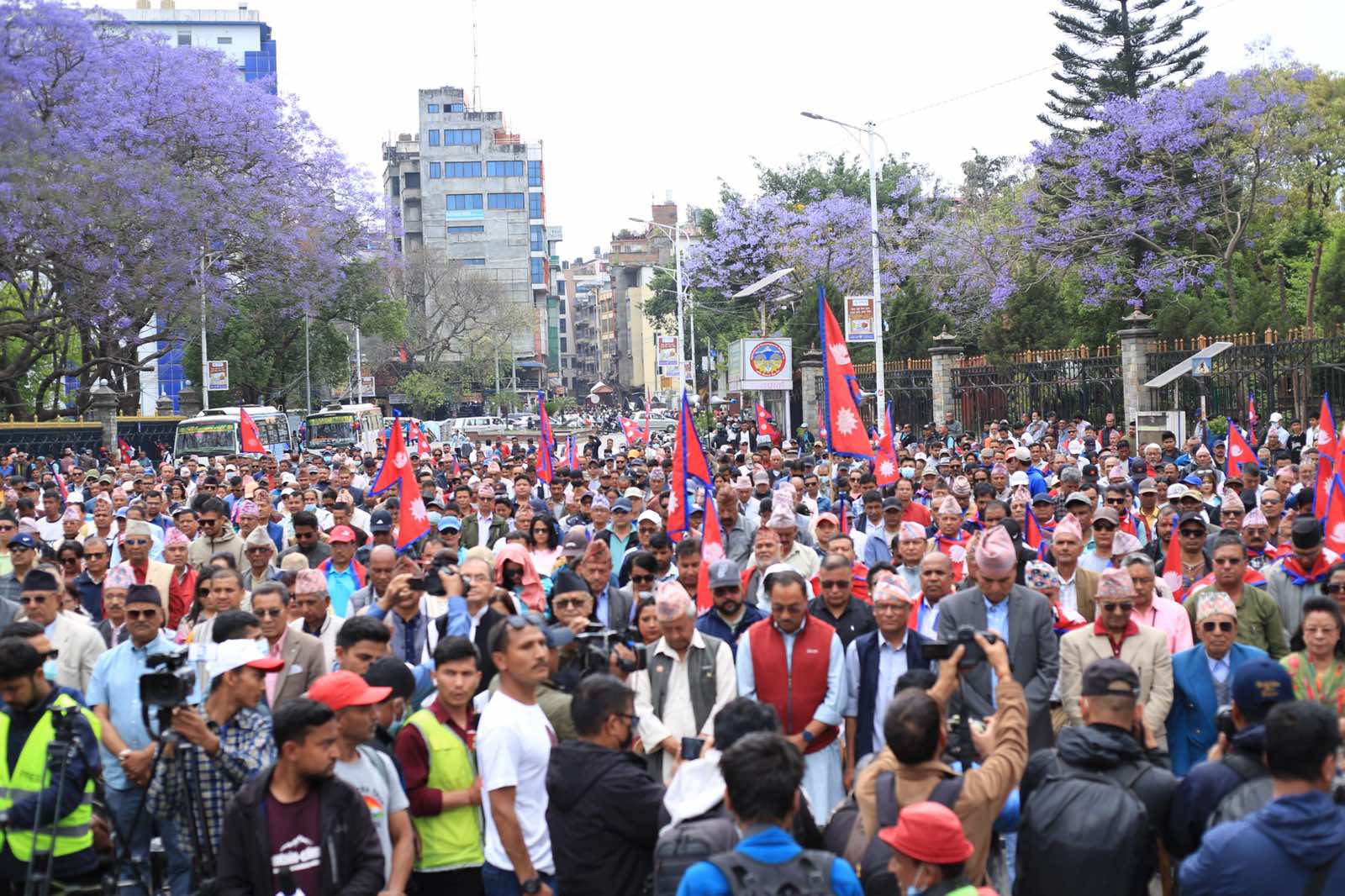RPP Nepal Chairman Kamal Thapa, RPP Chairman Rajendra Lingden, Nabaraj Subedi of the National Movement Committee for the Restoration of the Monarchy, National Power Nepal Chairman Keshar Bahadur Bista, Shiva Sena Nepal's Anil Baba (Basnet), Rama Singh, and others led the protest.