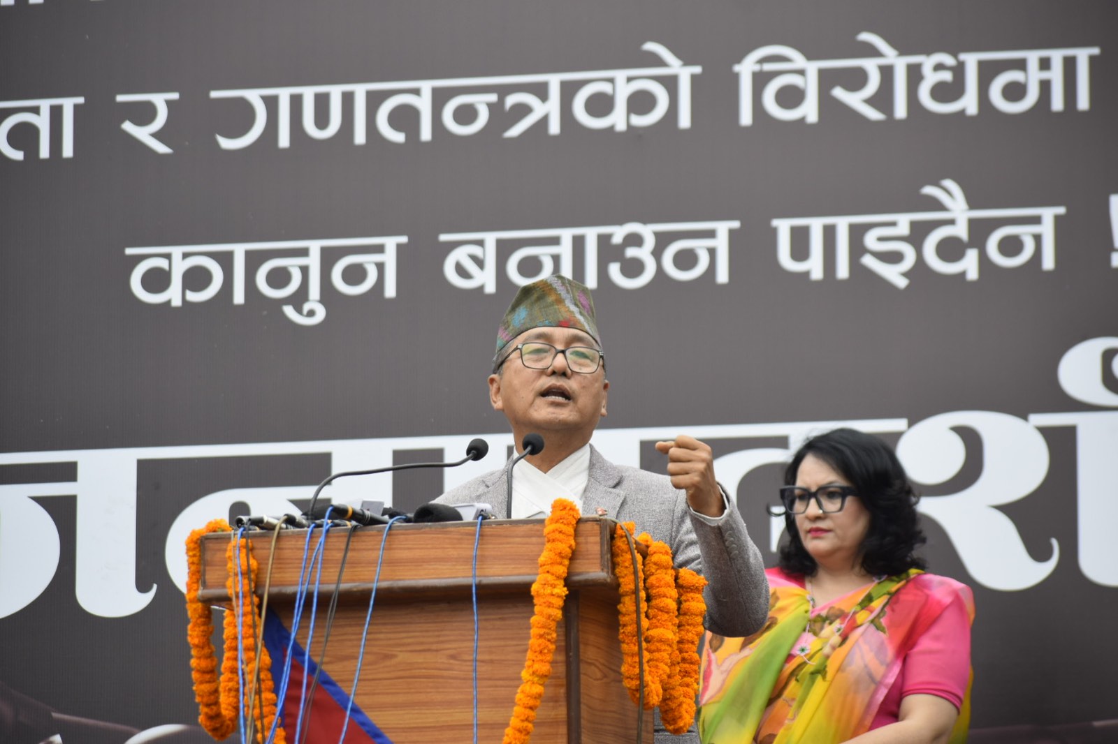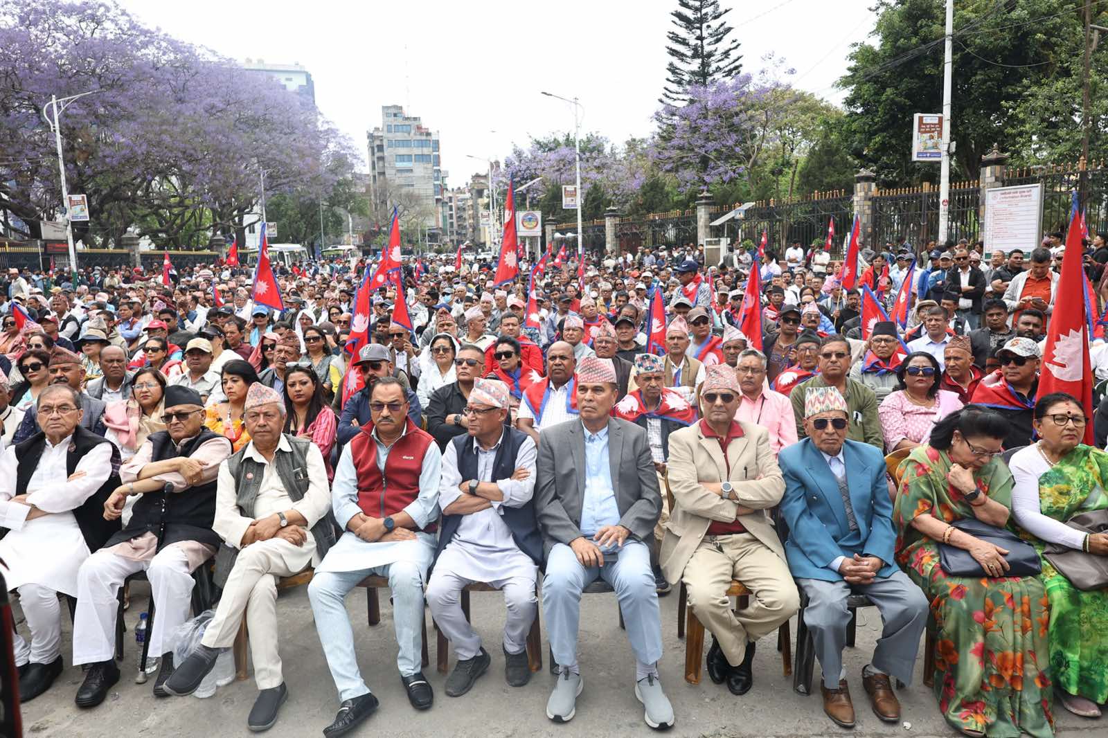 KATHMANDU, April 28: The Rastriya Prajatantra Party Nepal (RPP Nepal) held a public demonstration in Kathmandu, demanding the immediate release of prisoners of conscience. They also opposed the government's plan to introduce laws banning dissent against secularism and the republic.