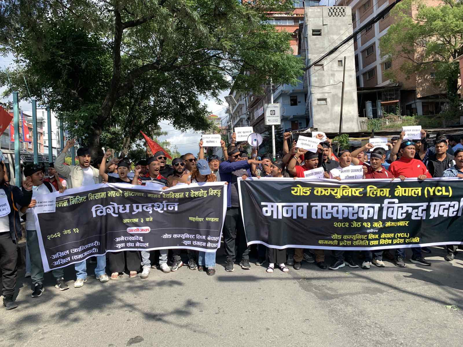 Organizations including All Nepal National Free Students Union (Revolutionary), All Nepal National Free Students Union (Socialist), ANNFSU, Youth Association Nepal, Young Communist League (YCL), and Nepal Youth Organization chanted anti-government slogans during the demonstration. They accused the government of making decisions that benefit organized trafficking networks involved in sending Nepali youths abroad on visit visas in collusion with human traffickers.