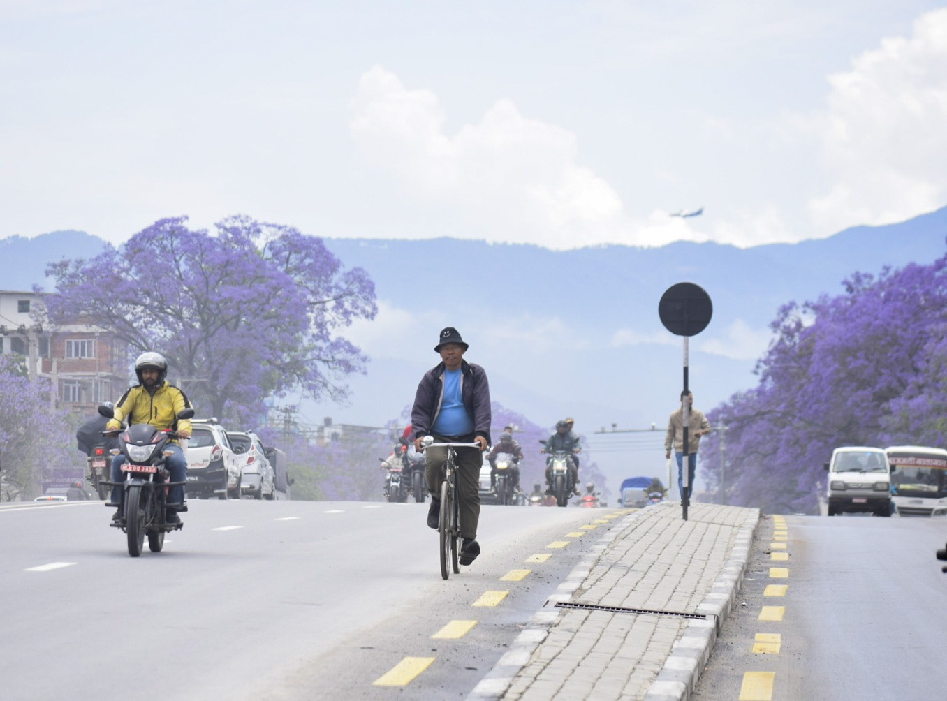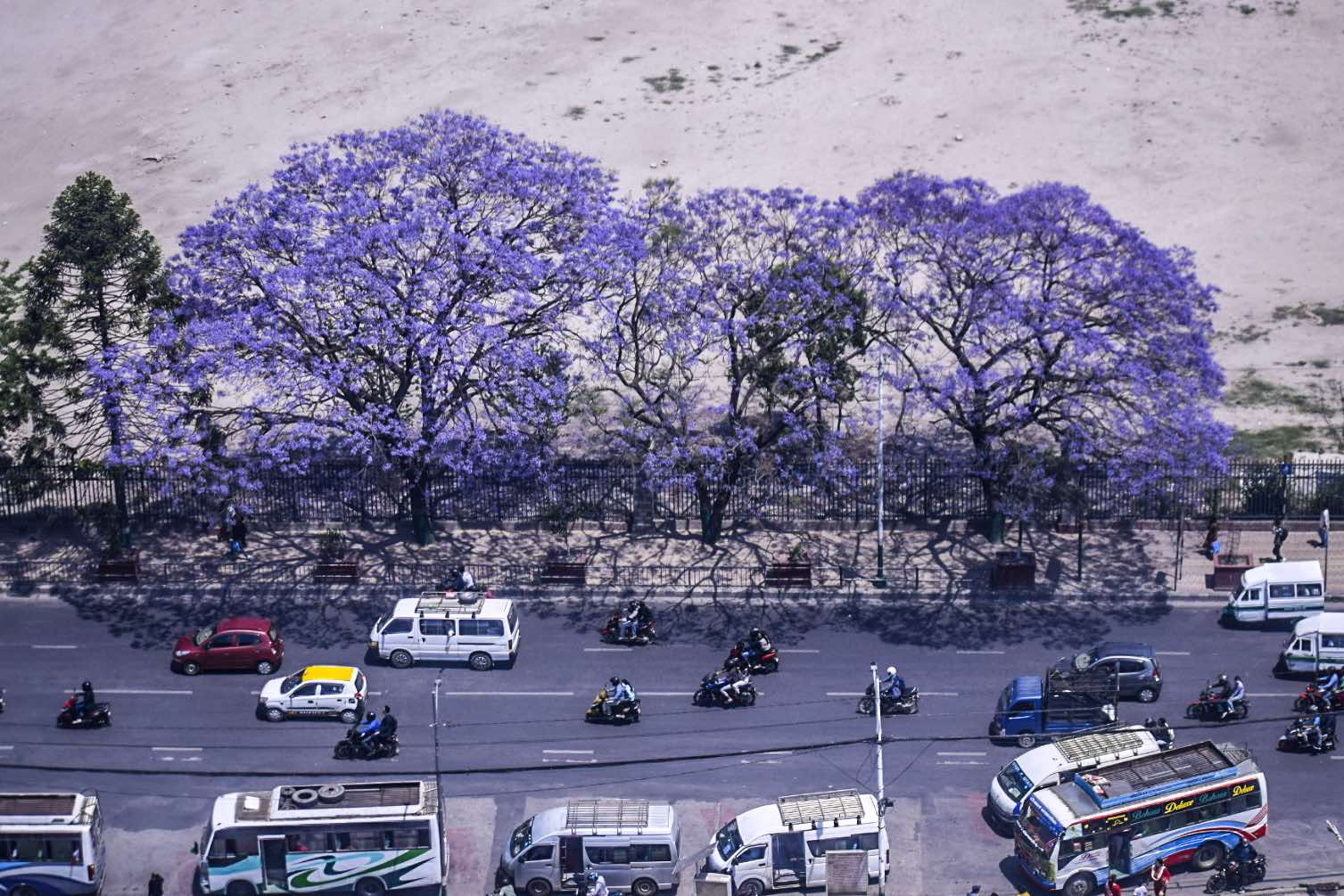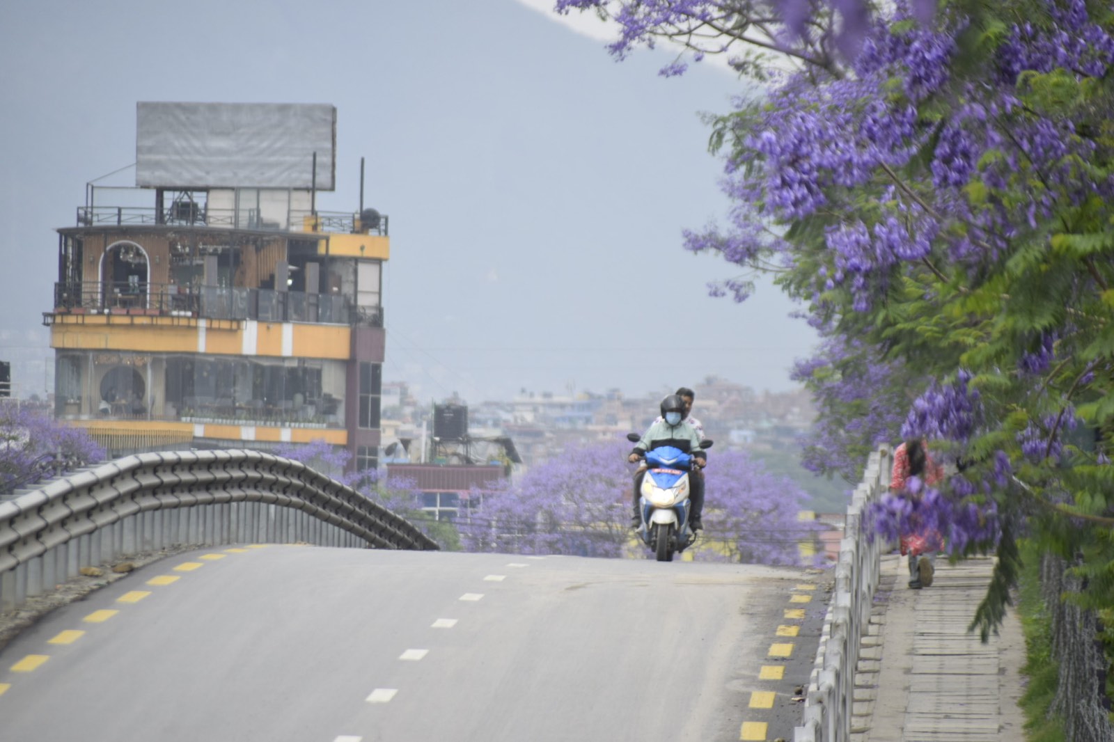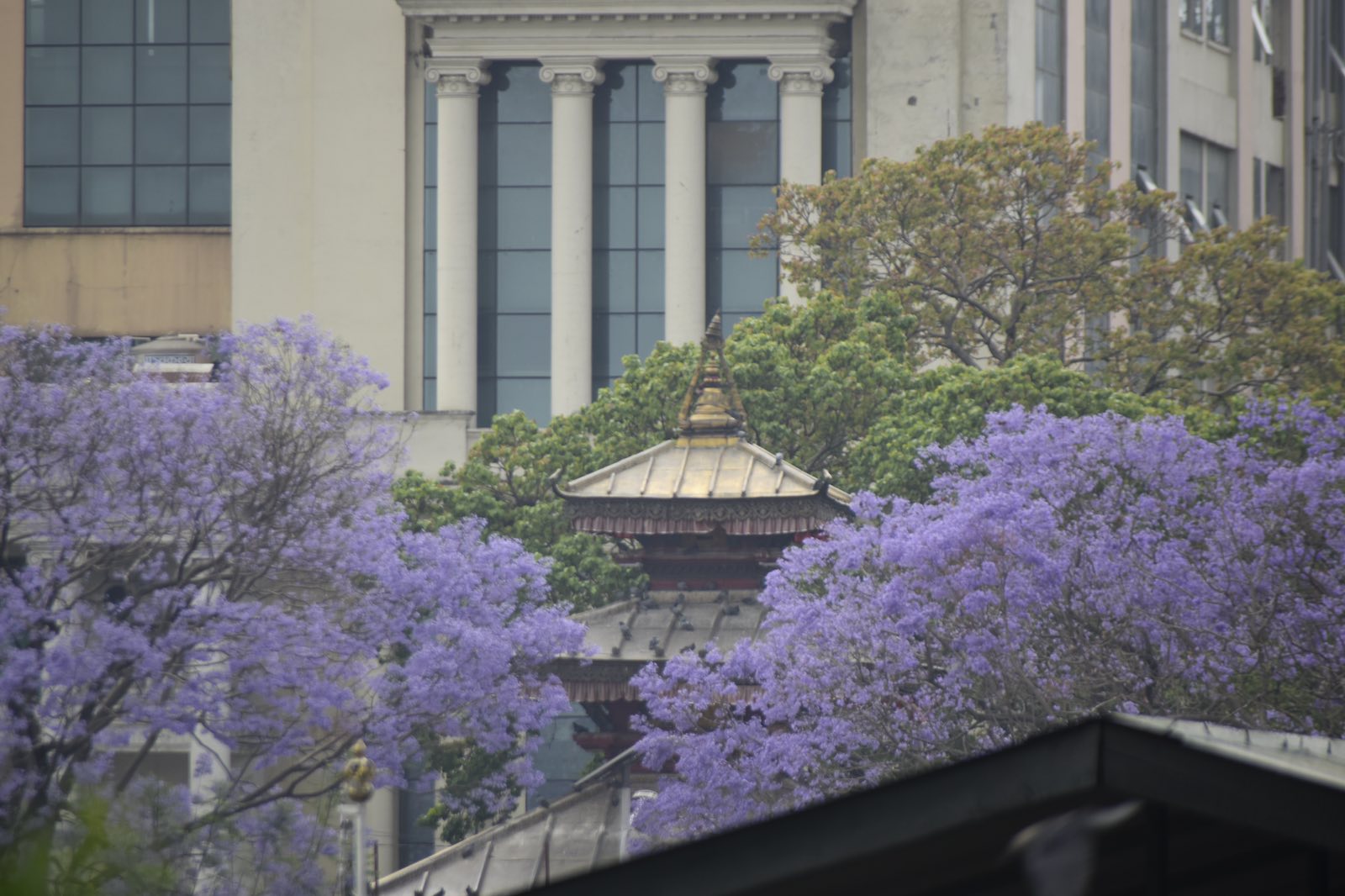 As the Nepali month of Baisakh begins, the city is now adorned with blooming jacaranda flowers along the roadsides, captivating locals and visitors alike. The vibrant flowers, along with the refreshing, pollution-free air, have made the city a picturesque haven this spring.