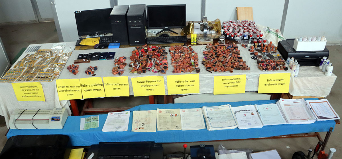 The arrests were made on Wednesday in Futung, Tarakeshwar Municipality-7, Kathmandu. Police seized various forged documents along with equipment used in the forgery operations.