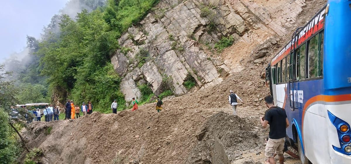 KANCHANPUR, Sept 16: The Mahakali Highway has been blocked due to a landslide triggered by continuous rainfall. The landslide occurred early Tuesday morning at Sajadhar in Dogadakedar-5, according to local resident Sher Singh Karki.