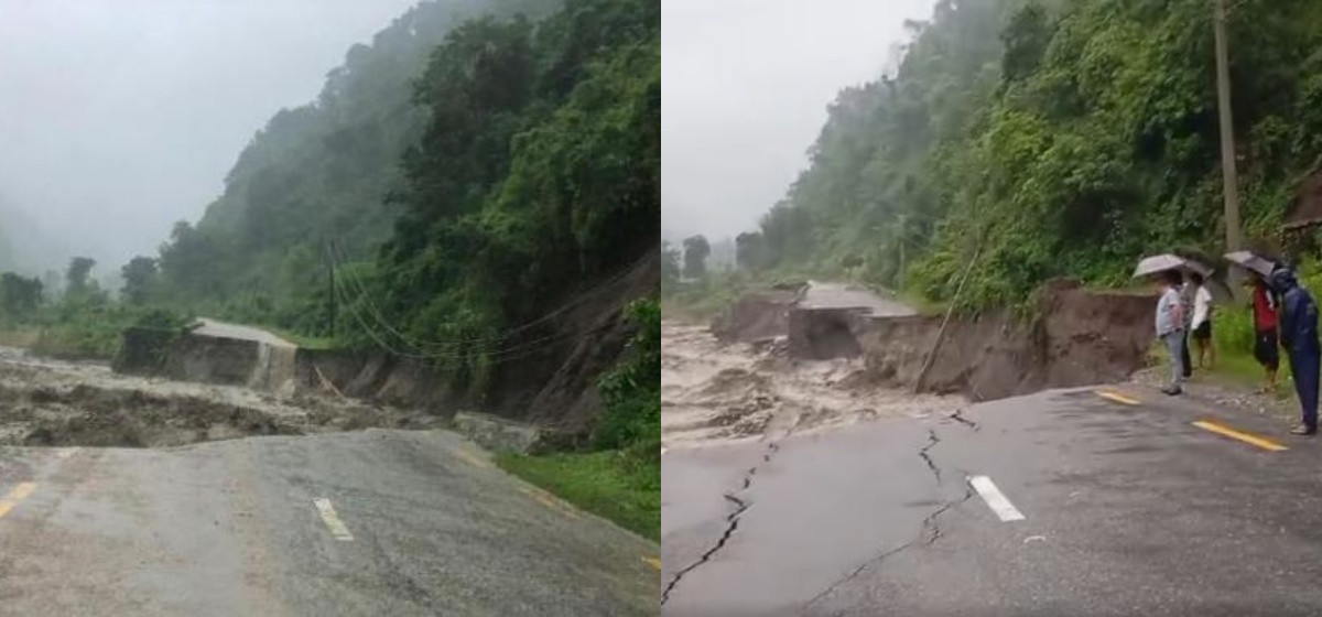 KATHMANDU, May 31: Heavy rainfall on Friday night caused the Leuti River to flood and severely damage the Koshi Highway in Dhankuta. The flood washed away approximately 100 meters of the road at Fedigaun in Sanghurigadhi-6, according to the District Police Office.