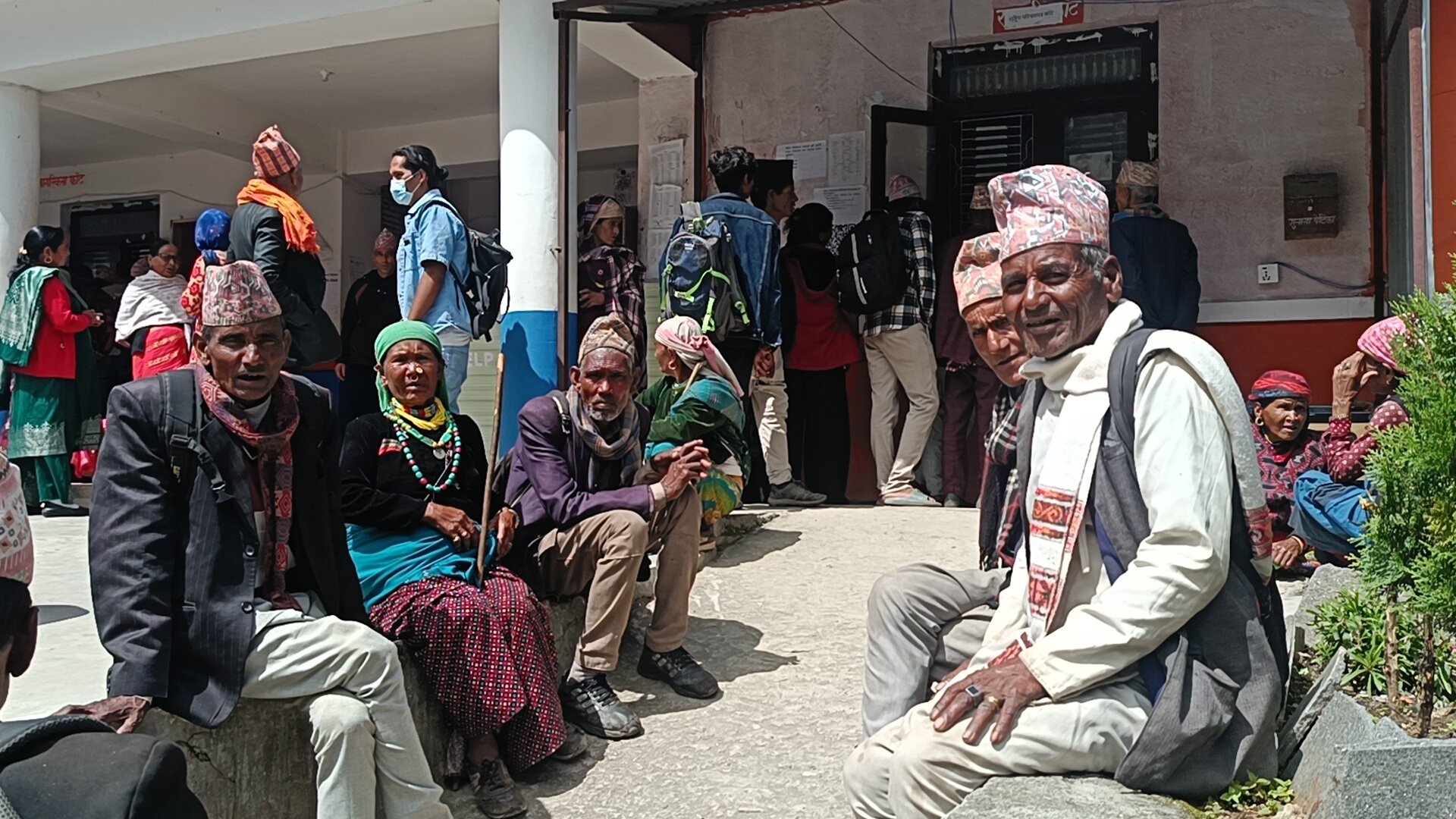 Similarly, 80-year-old Pati Pandeya of Tadi, Khandachakra Municipality–3, Kalikot, was taken to the DAO by her son, Bhanuprabhat Pandeya. “After the government made the national identity card mandatory, it has become very challenging to bring elderly and disabled people to the administration office,” he said. “If this is the condition even in the municipality where the district headquarters lies, imagine how much more difficult it must be for those walking from distant villages.”