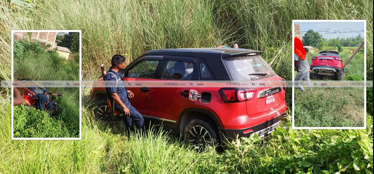 According to police, the driver sped off when a team from the Area Police Office (APO), Garuda, attempted to stop the vehicle for a check. The car was later found plunged about 20 feet into a field near Jhajh Khola in Garuda Municipality-5, and the driver had fled the scene.