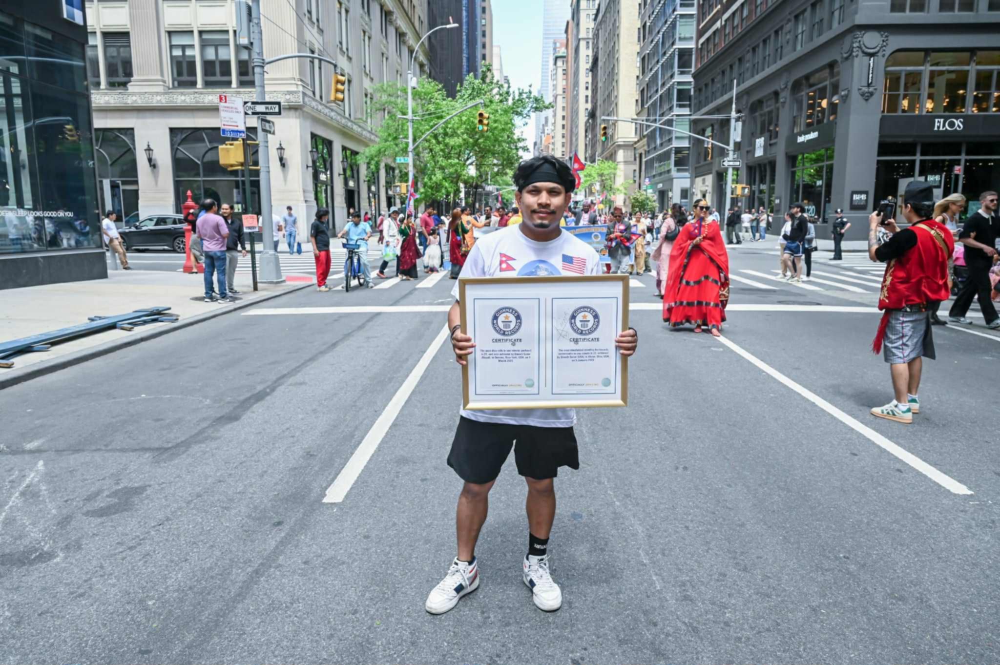 Senator Schumer congratulated Sunar for his accomplishments in parkour and gymnastics, calling his records “extraordinary” and praising his global representation of Nepal. Thousands of spectators witnessed the moment as Sunar, dressed in traditional Nepali attire, received the recognition along Madison Avenue.