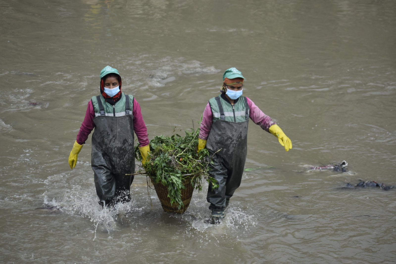 Here are some photos of workers wading through knee-deep water, dragging out tangled weeds and garbage that have built up over time taken by Republica’s Photojournalist Dipesh Darshandhari: