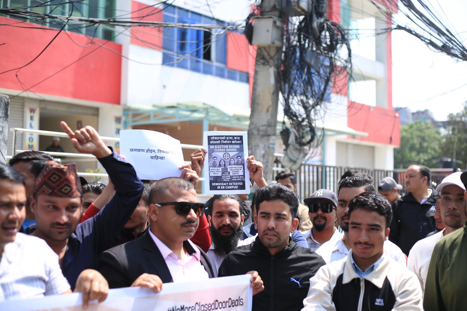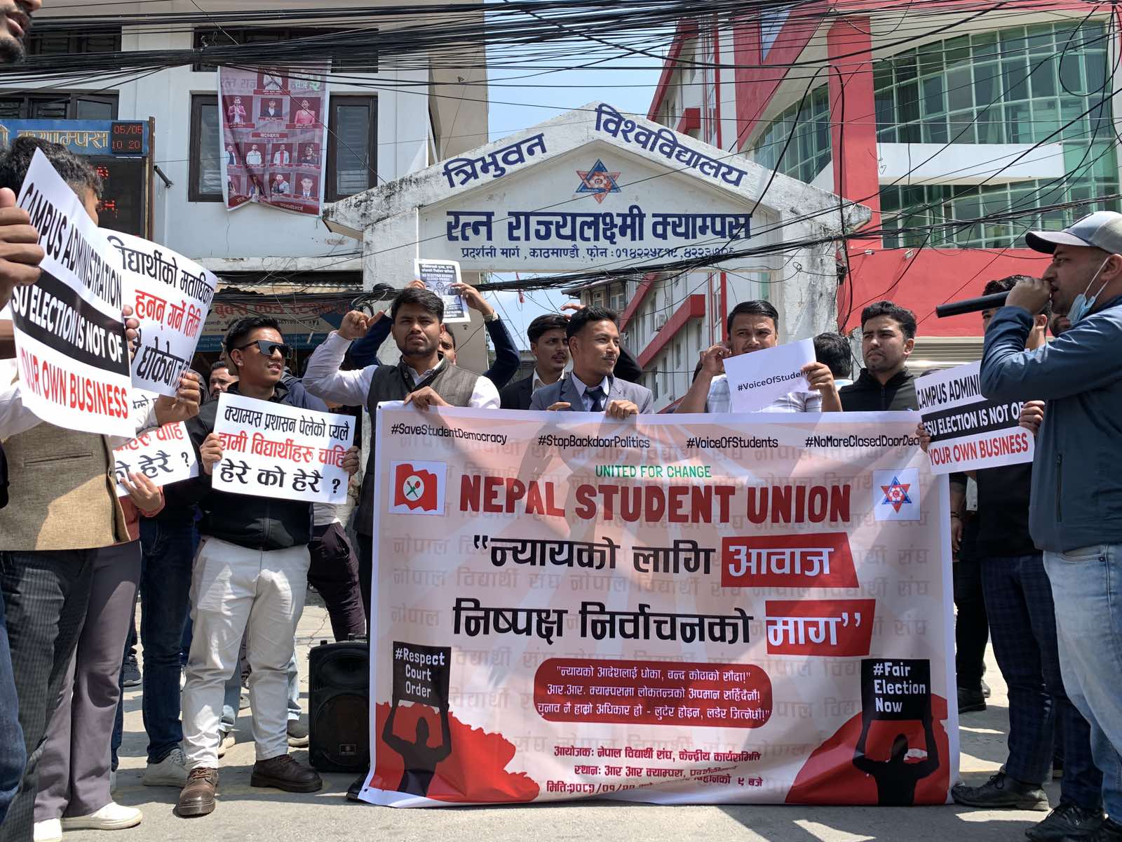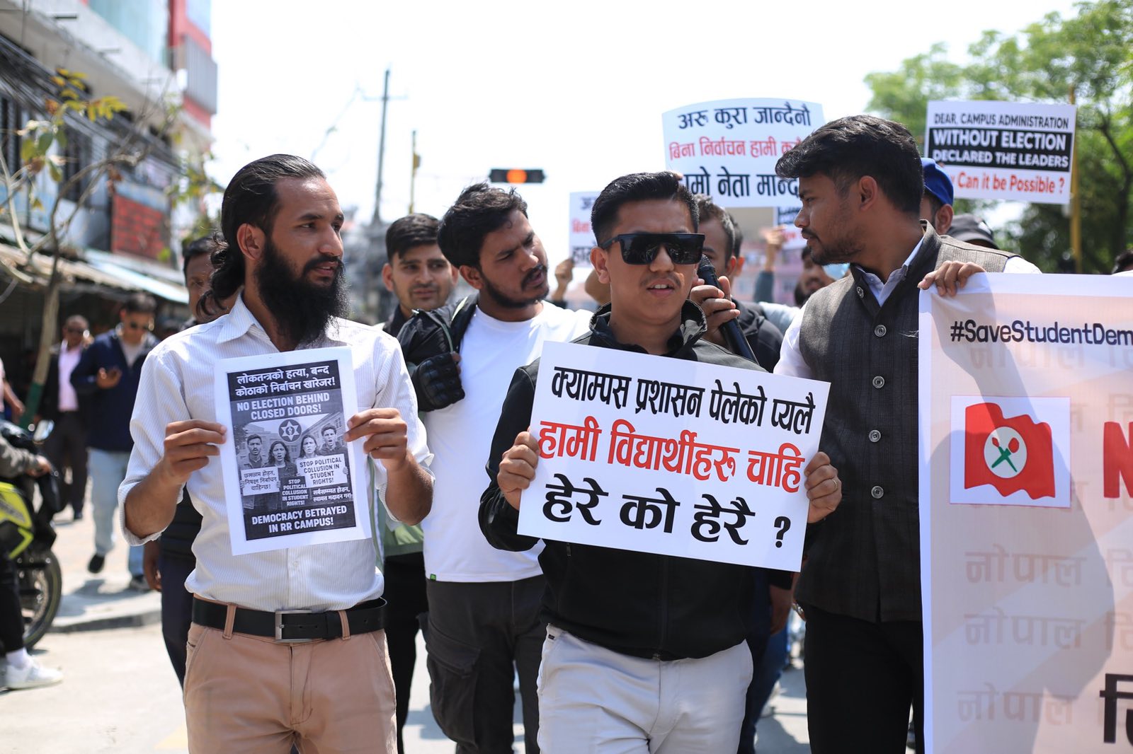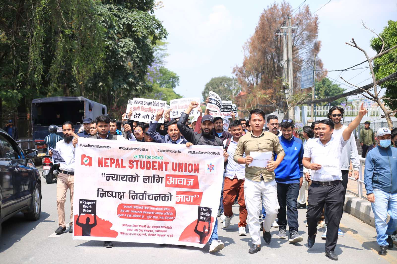 KATHMANDU, May 5: The Central Working Committee of the Nepal Student Union (NSU) staged a demonstration at Ratna Rajya (RR) Campus on Monday, voicing their demand for justice, democracy and impartial elections.