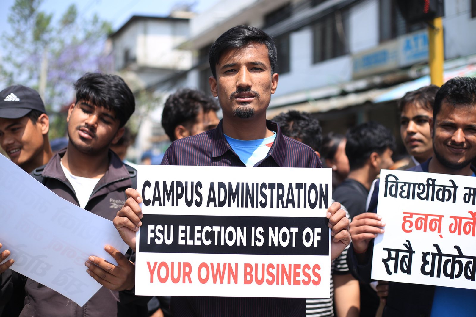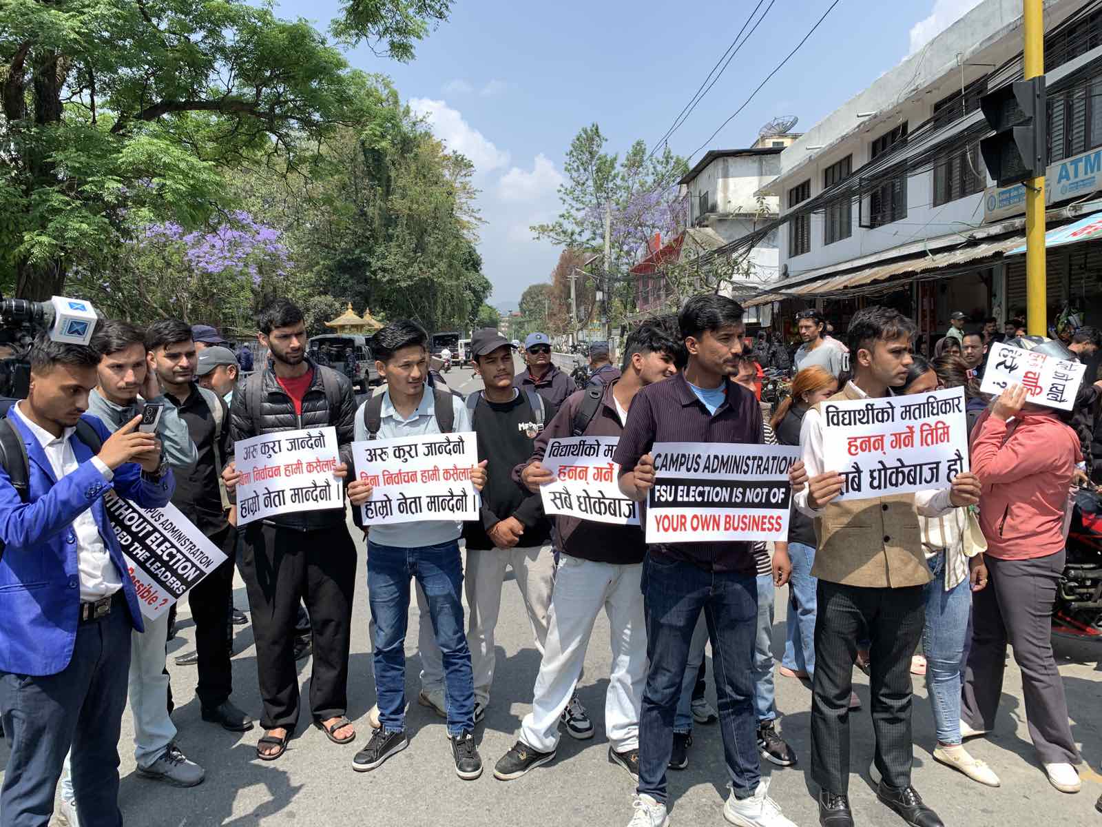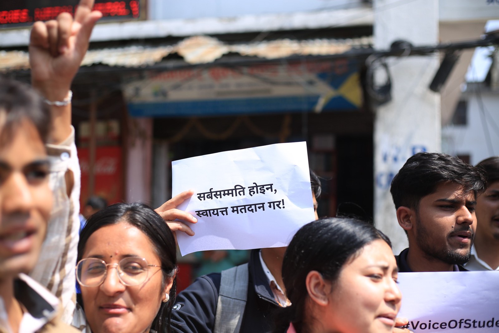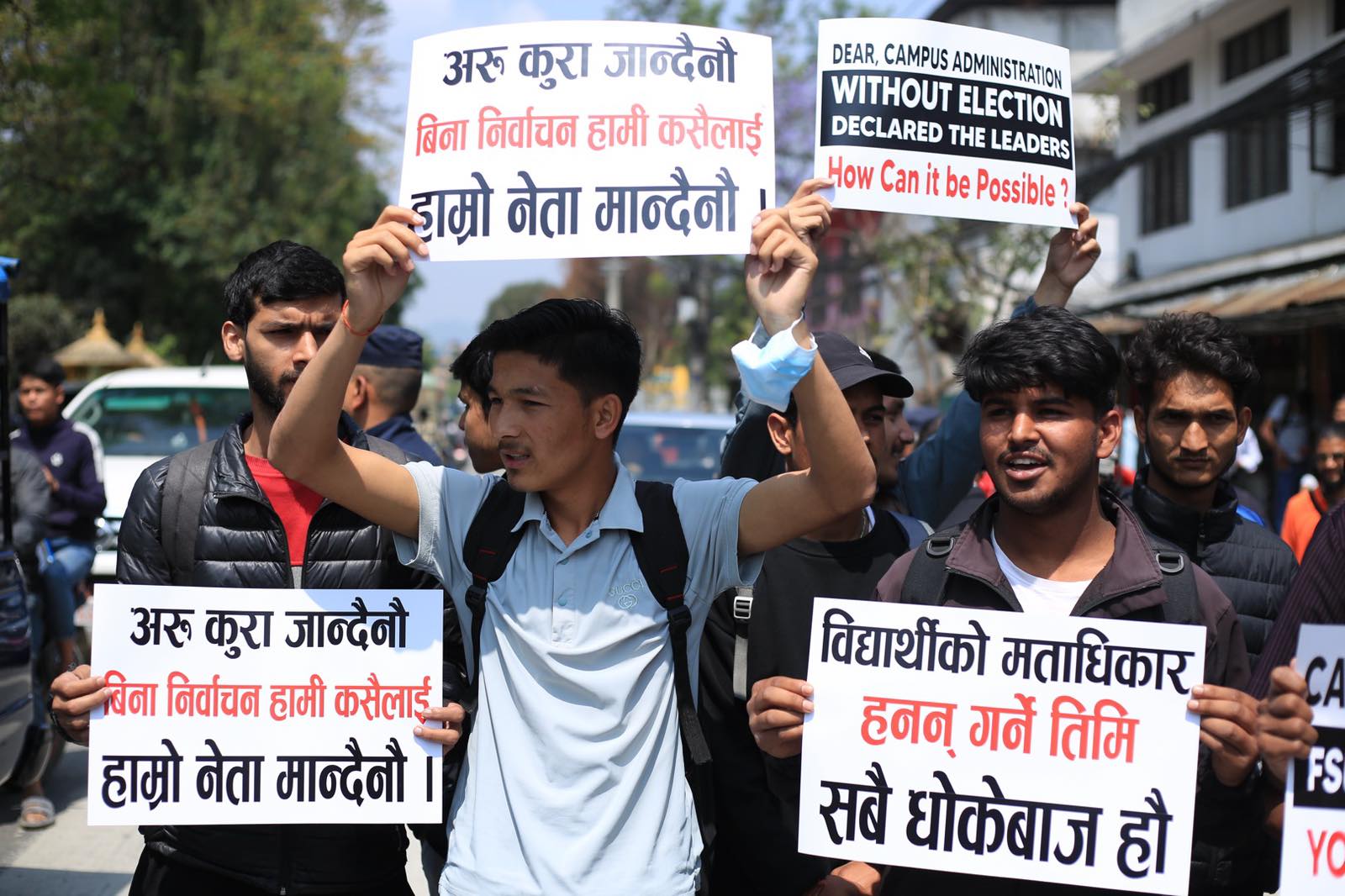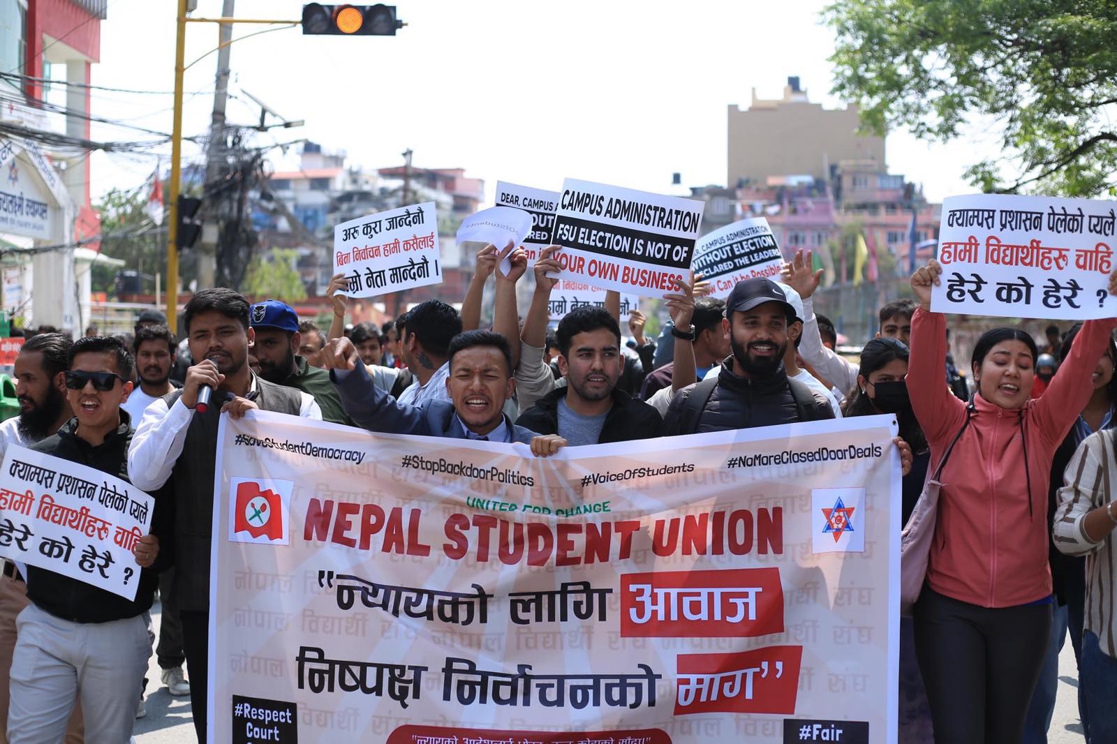 KATHMANDU, May 5: The Central Working Committee of the Nepal Student Union (NSU) staged a demonstration at Ratna Rajya (RR) Campus on Monday, voicing their demand for justice, democracy and impartial elections.