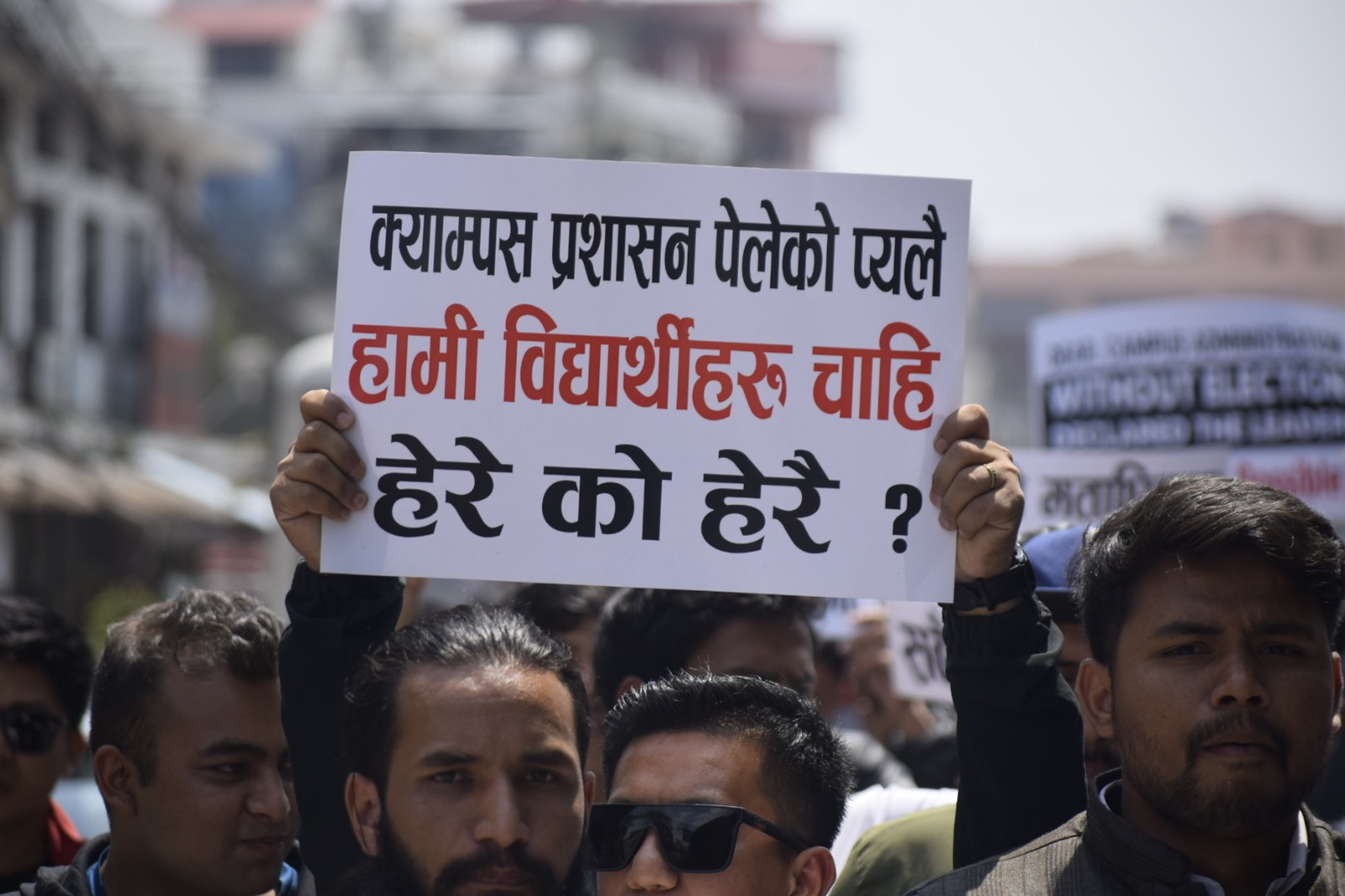 Here are some pictures of students raising slogans at RR Campus with placards taken by Republica’s Photojournalist Dipesh Darshandhari: