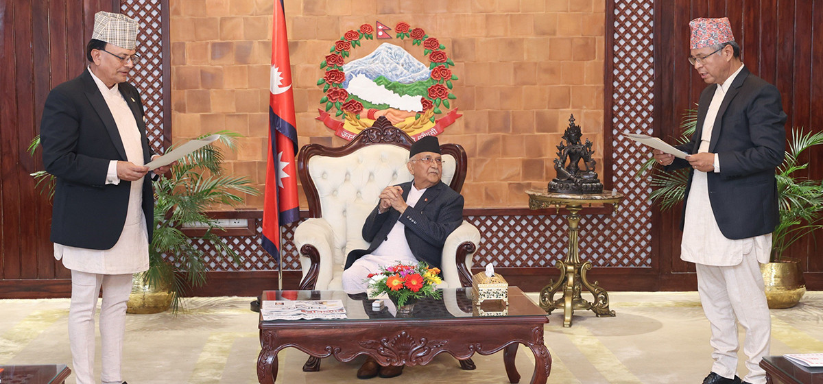 During the event at the Prime Minister's residence in Baluwatar, Dr Arjun Karki (Chairperson), Prof. Dr Ramesh Kumar Dhungel (Vice-Chancellor) and Dr Dambar Dhoj Chemjong (Registrar) took their oaths of office and secrecy.