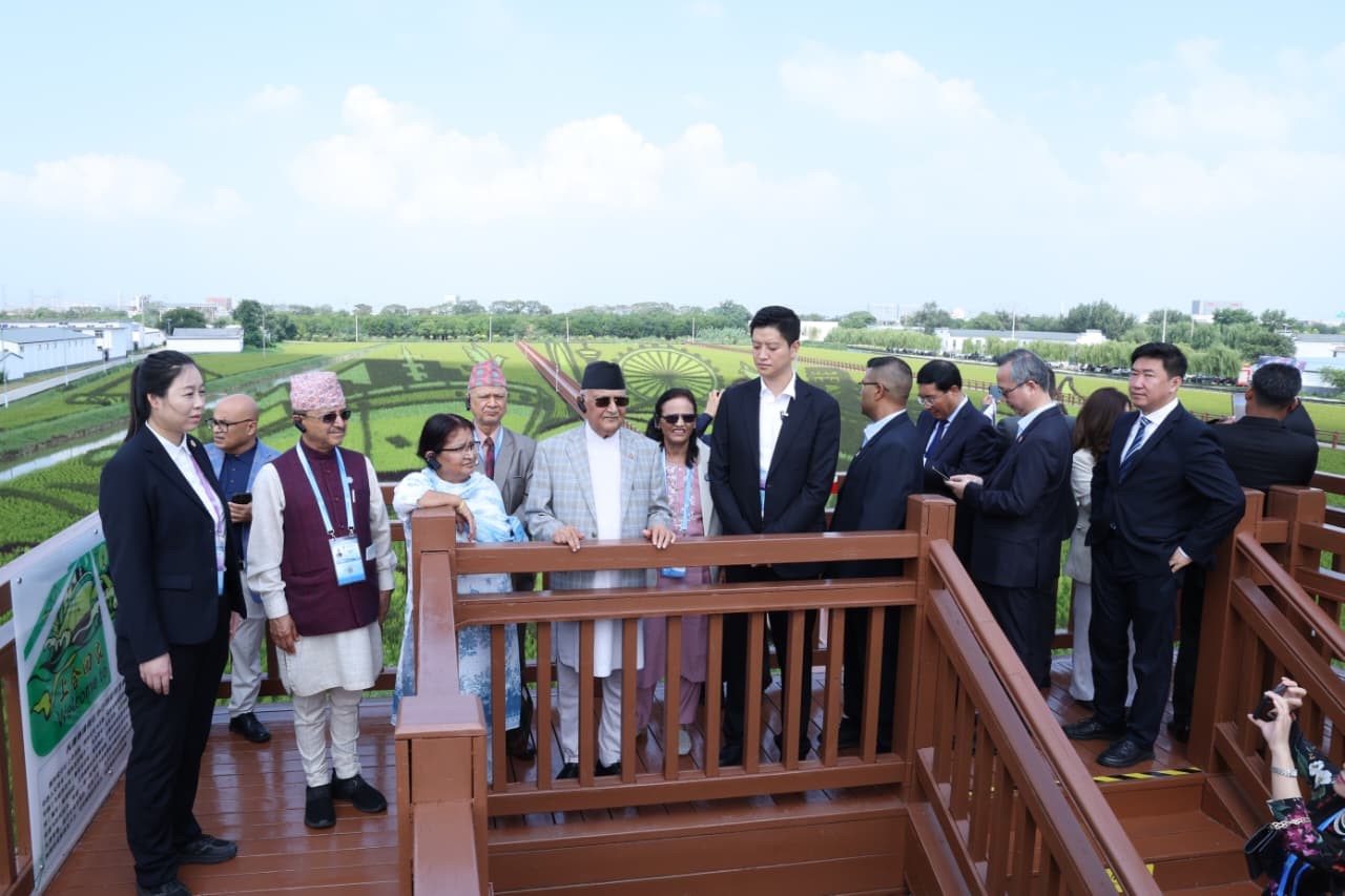 Oli toured the agricultural site at Xiaozhan, which has been developed as a rice production hub in the region. The visit was part of his official engagements during his stay in China.