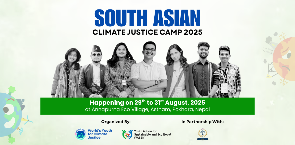 The camp is the second phase of the South Asian Climate Justice Fellowship and Camp 2025, jointly organized by World’s Youth for Climate Justice (WYCJ) Nepal, Youth Action for Sustainable and Eco Nepal (YASEN), and the Forum for Legal Youths (FLY).