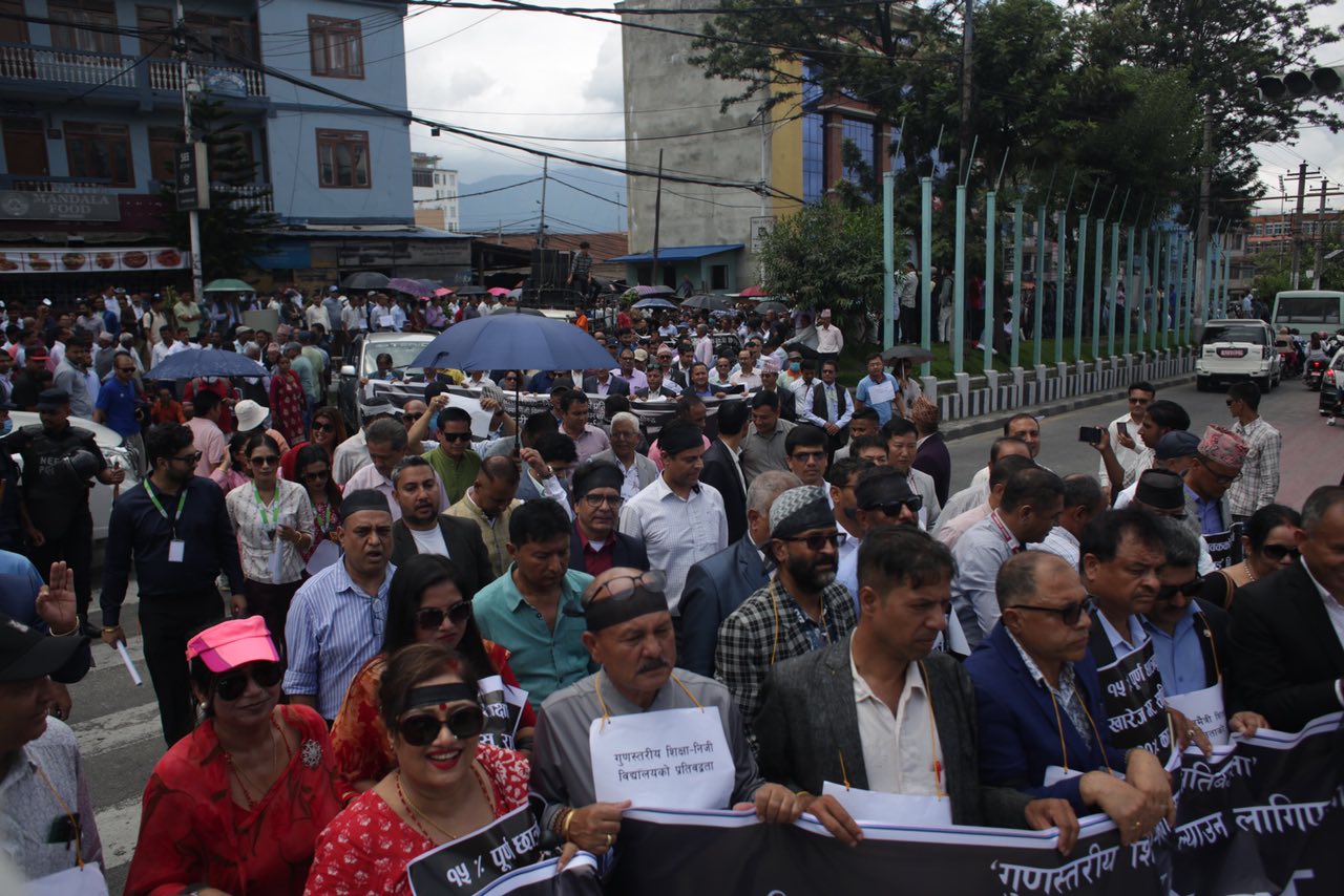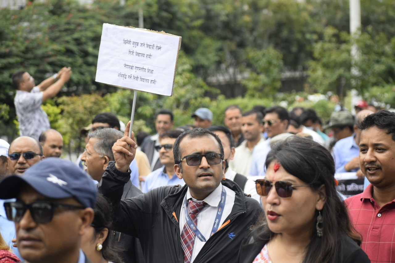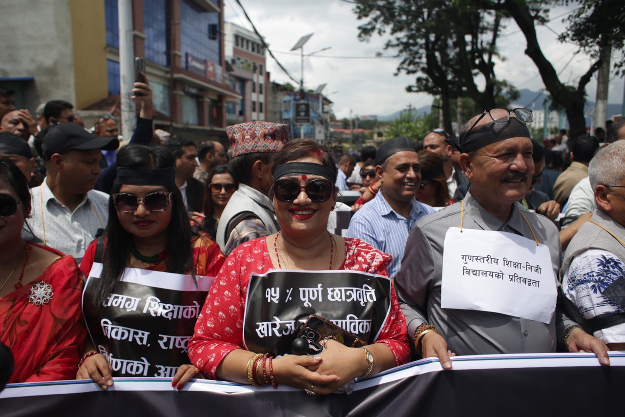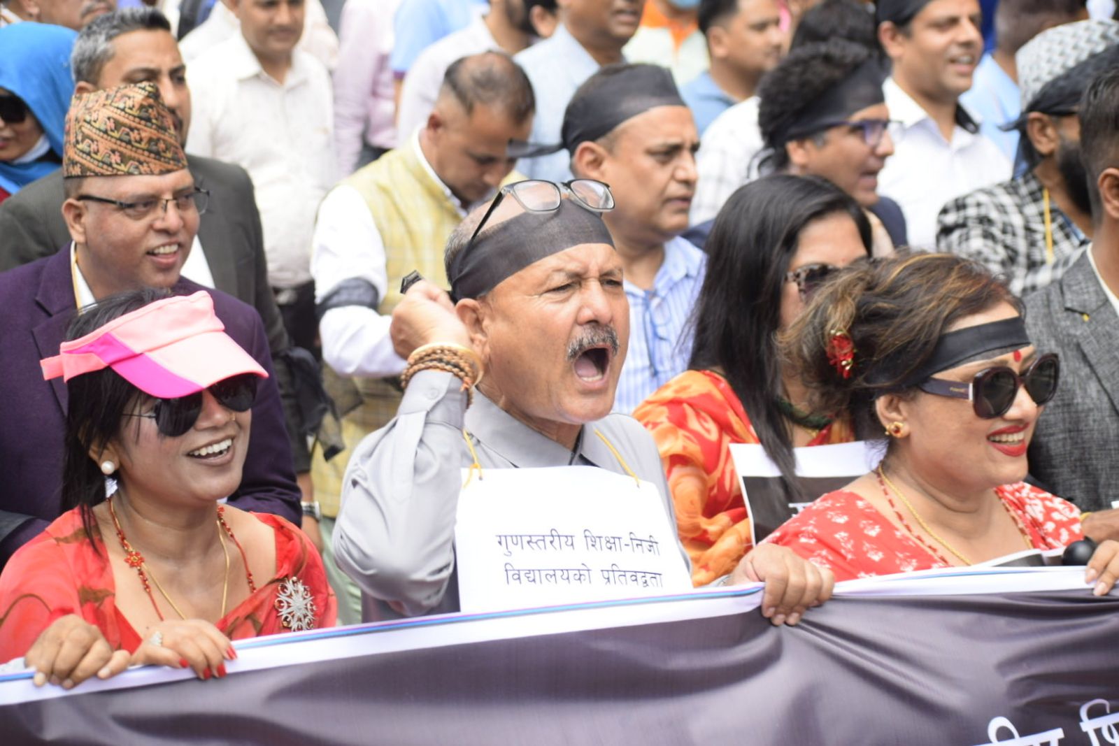 Carrying banners with slogans such as “Quality Education: Commitment of Private Schools,” they gathered at Maitighar Mandala to protest against the proposed federal education act, which they claim seeks to shut down private schools.