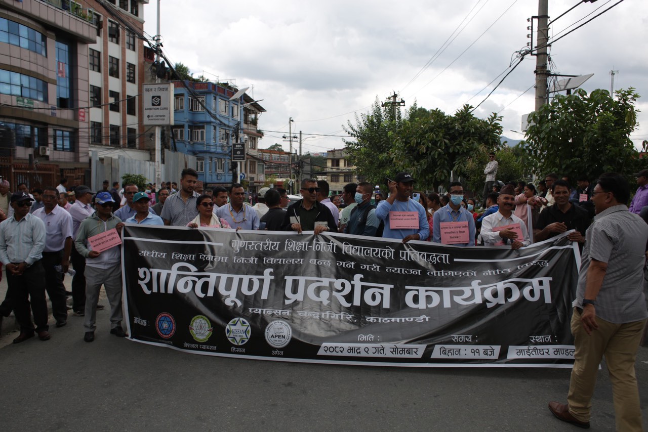 KATHMANDU, Aug 25 : Private school associations including PABSON, National PABSON, HISSAN and OPEN staged a peaceful demonstration in Kathmandu on Monday.