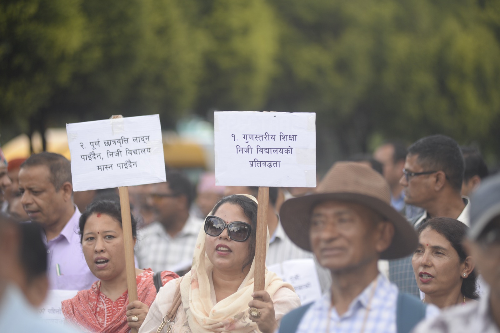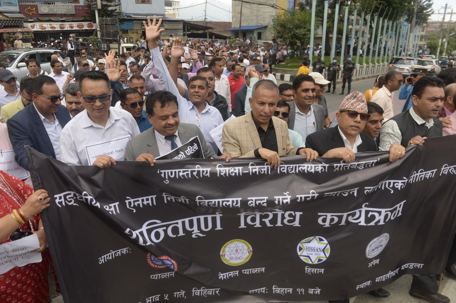 KATHMANDU, Aug 21: Demonstrations were held on Thursday against the government’s plan to introduce a Federal Education Act that private school operators say would effectively shut down private schools.