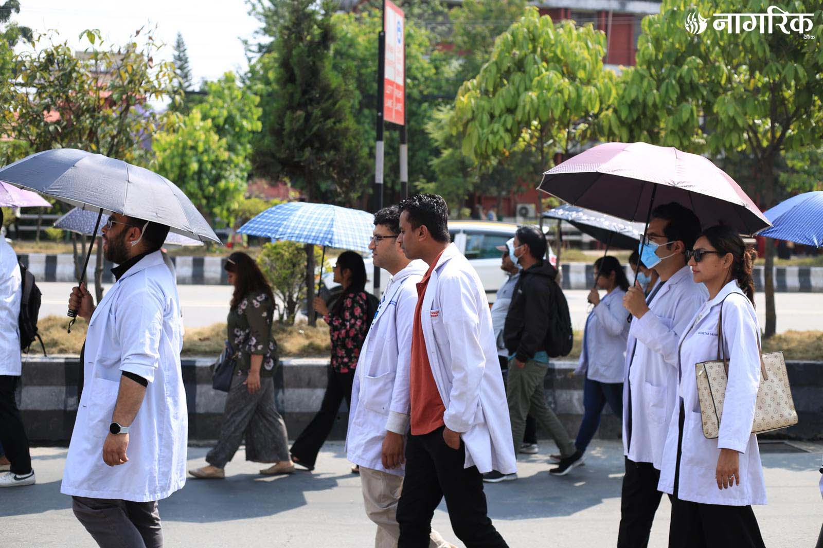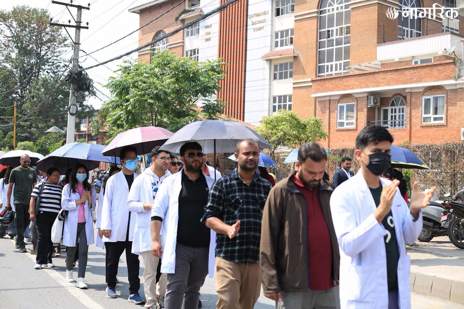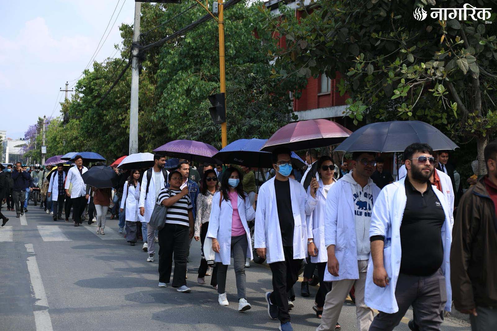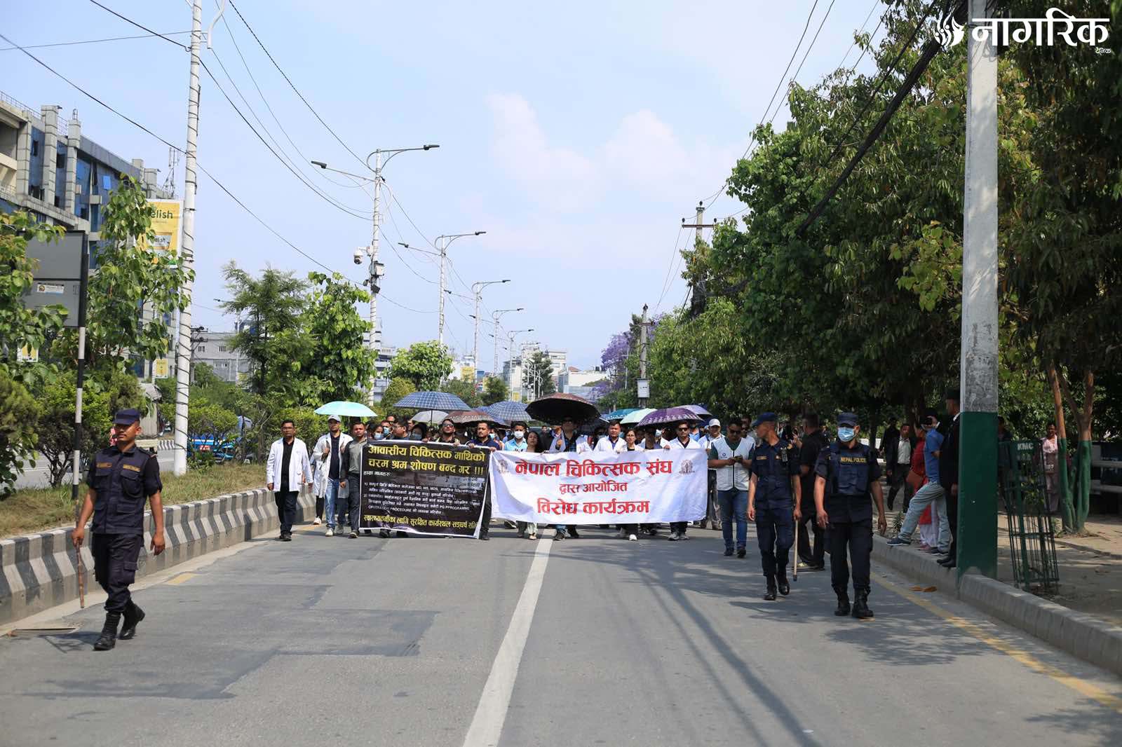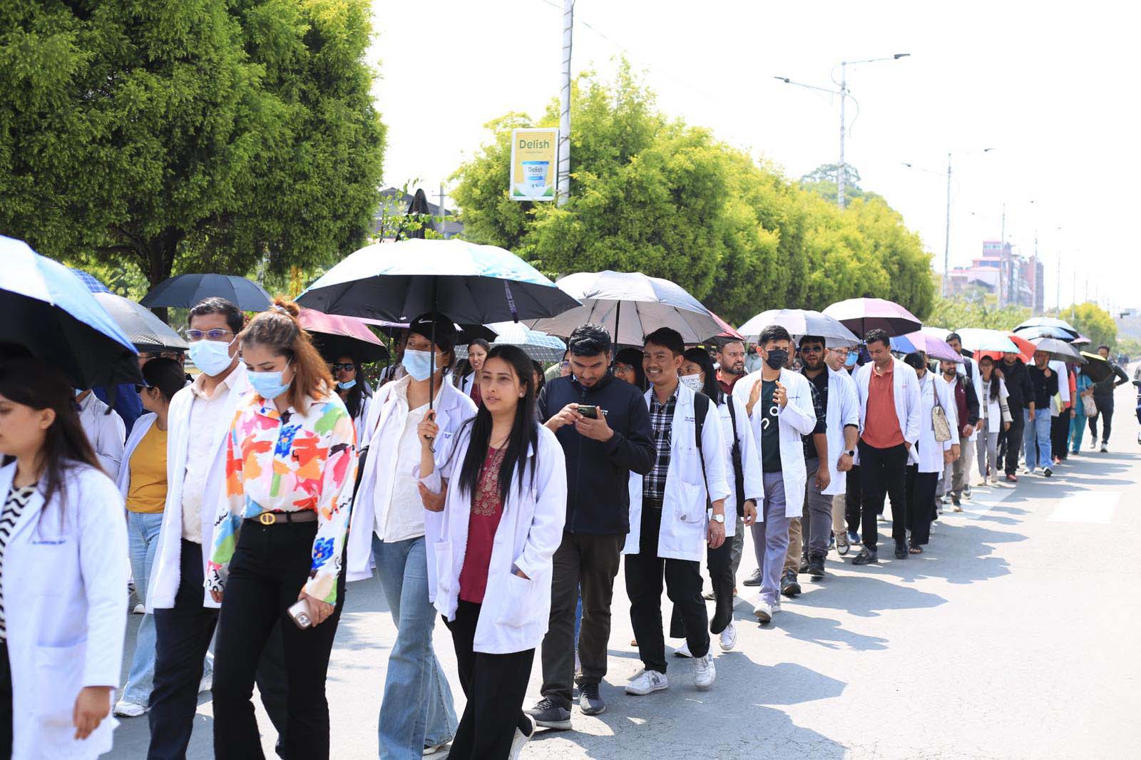 Since April 3, they have been boycotting services and have taken to the streets, with today's demonstration stretching from Maitighar to Baneshwor in Kathmandu.