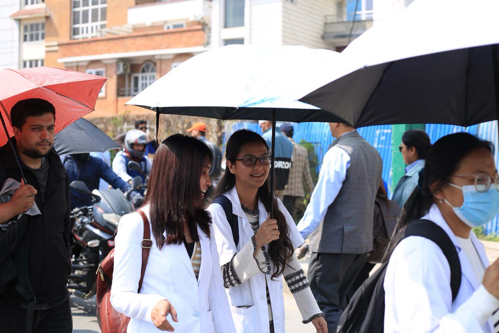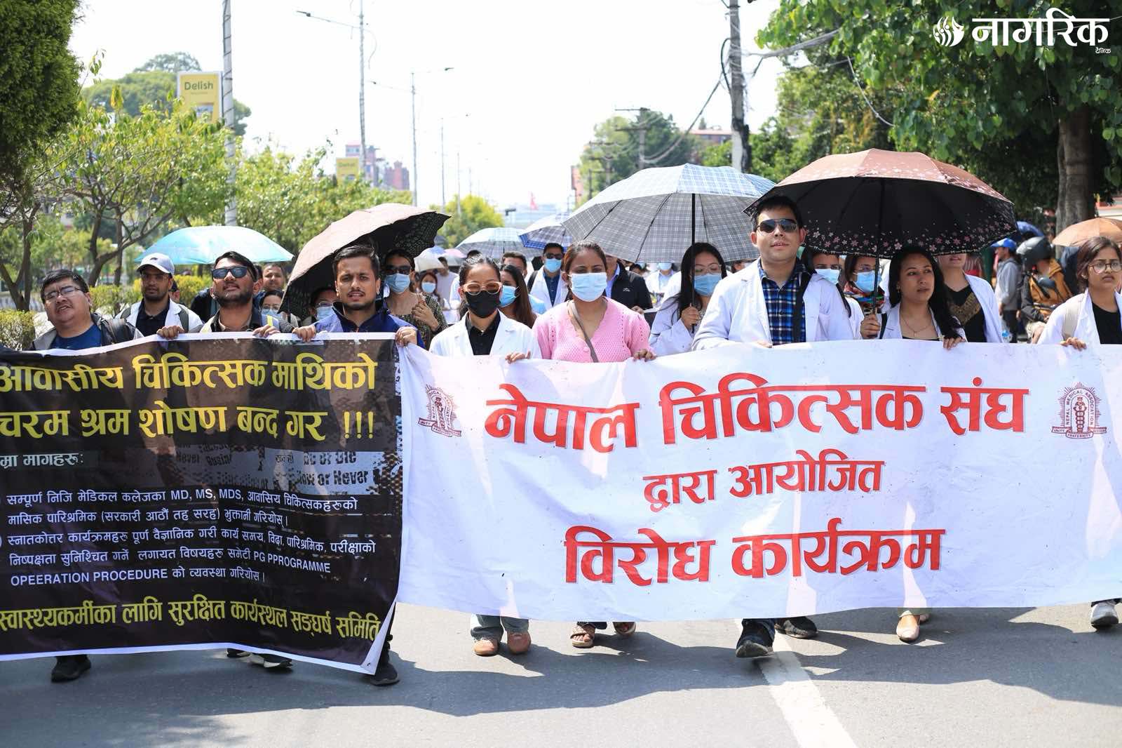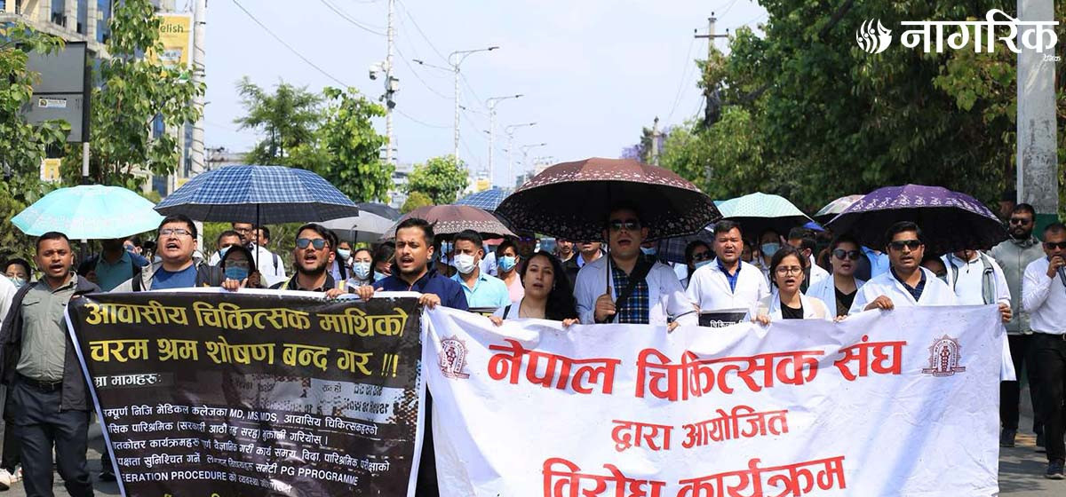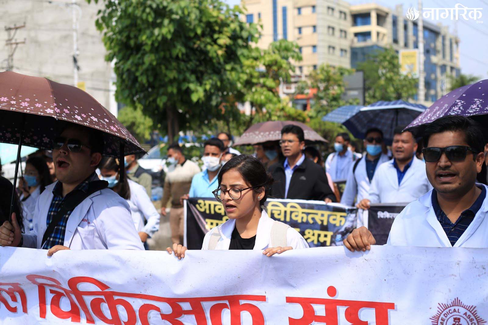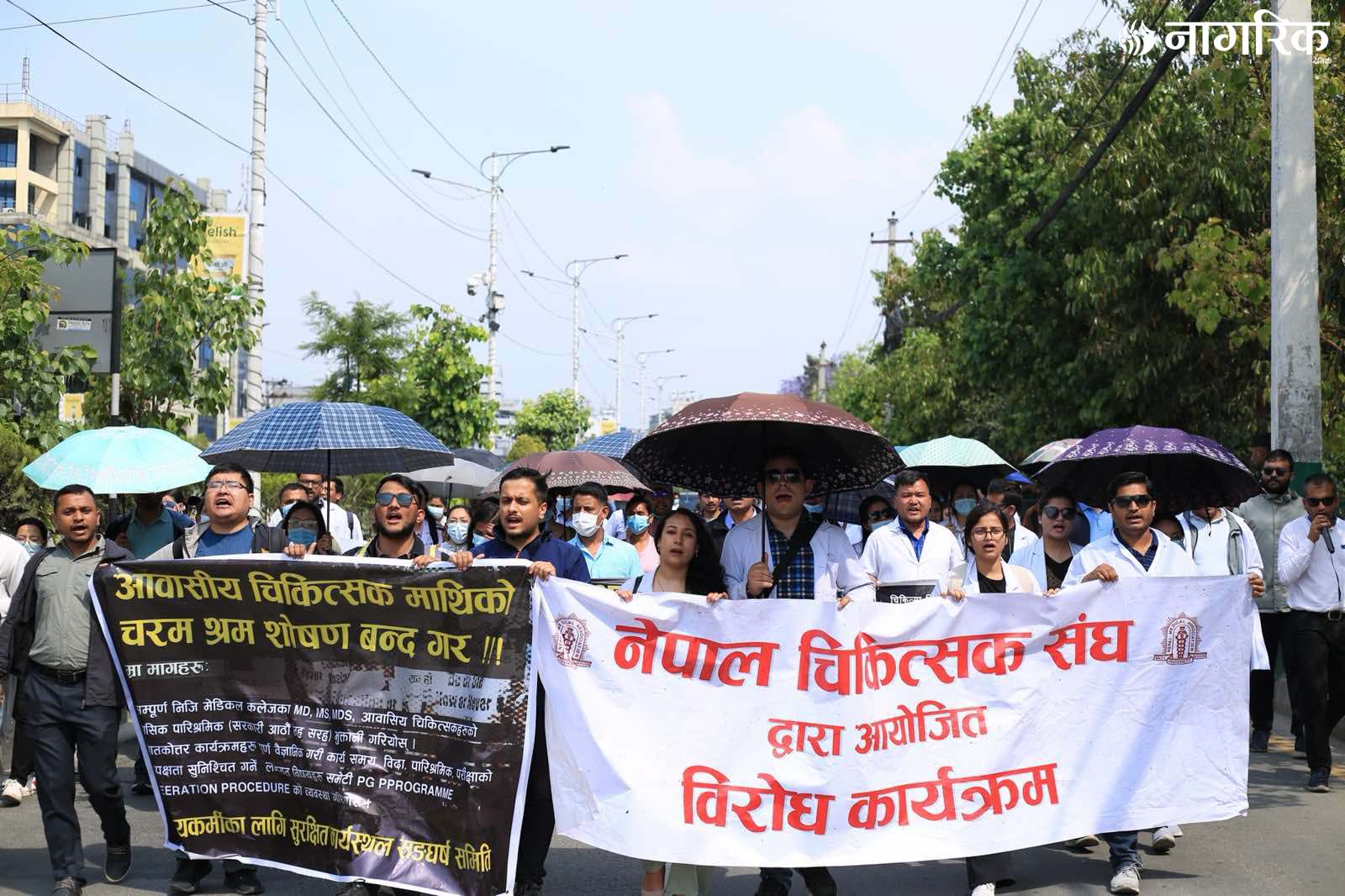 Since April 3, they have been boycotting services and have taken to the streets, with today's demonstration stretching from Maitighar to Baneshwor in Kathmandu.