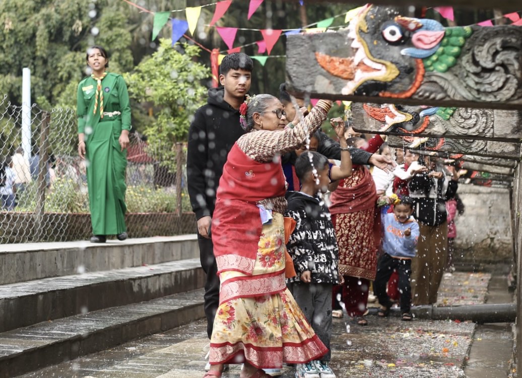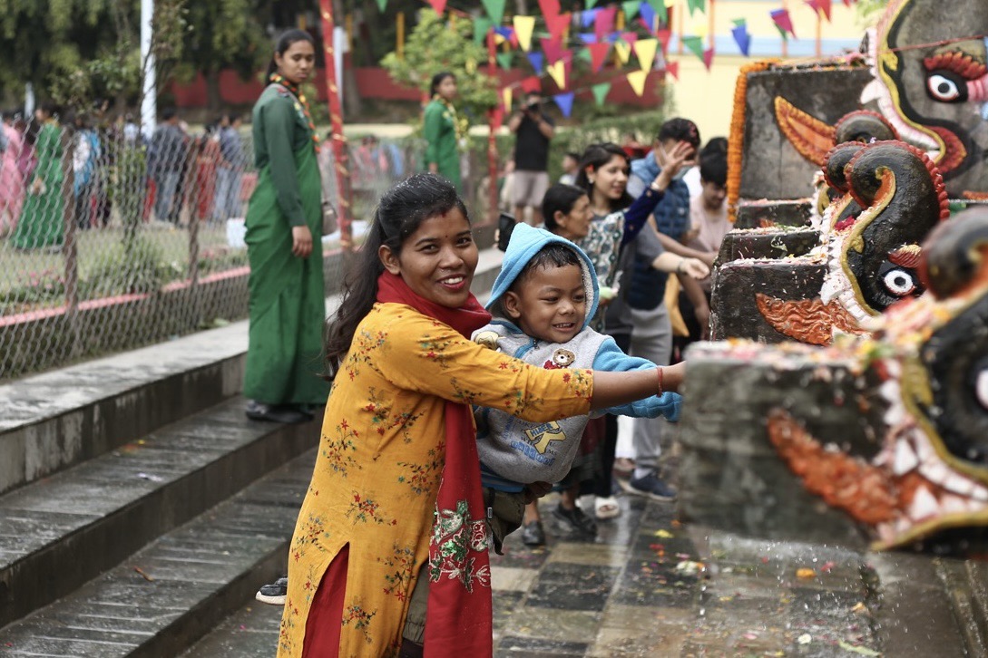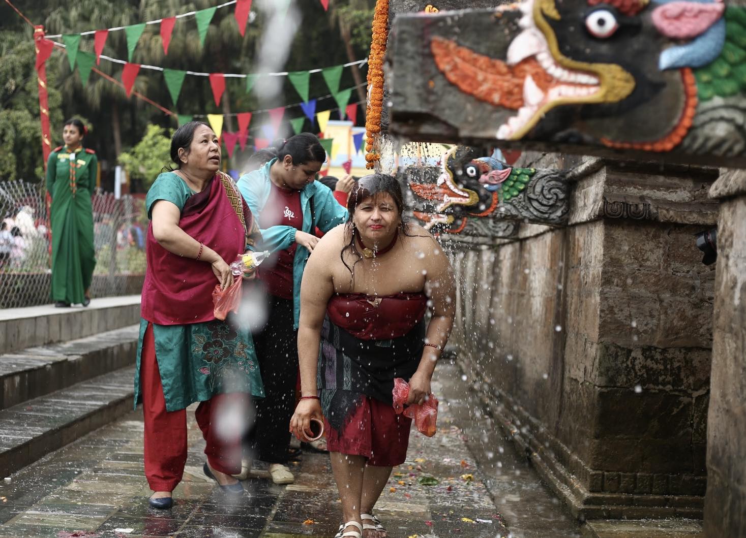 Devotees gather at Balaju Park for traditional ritual shower at...