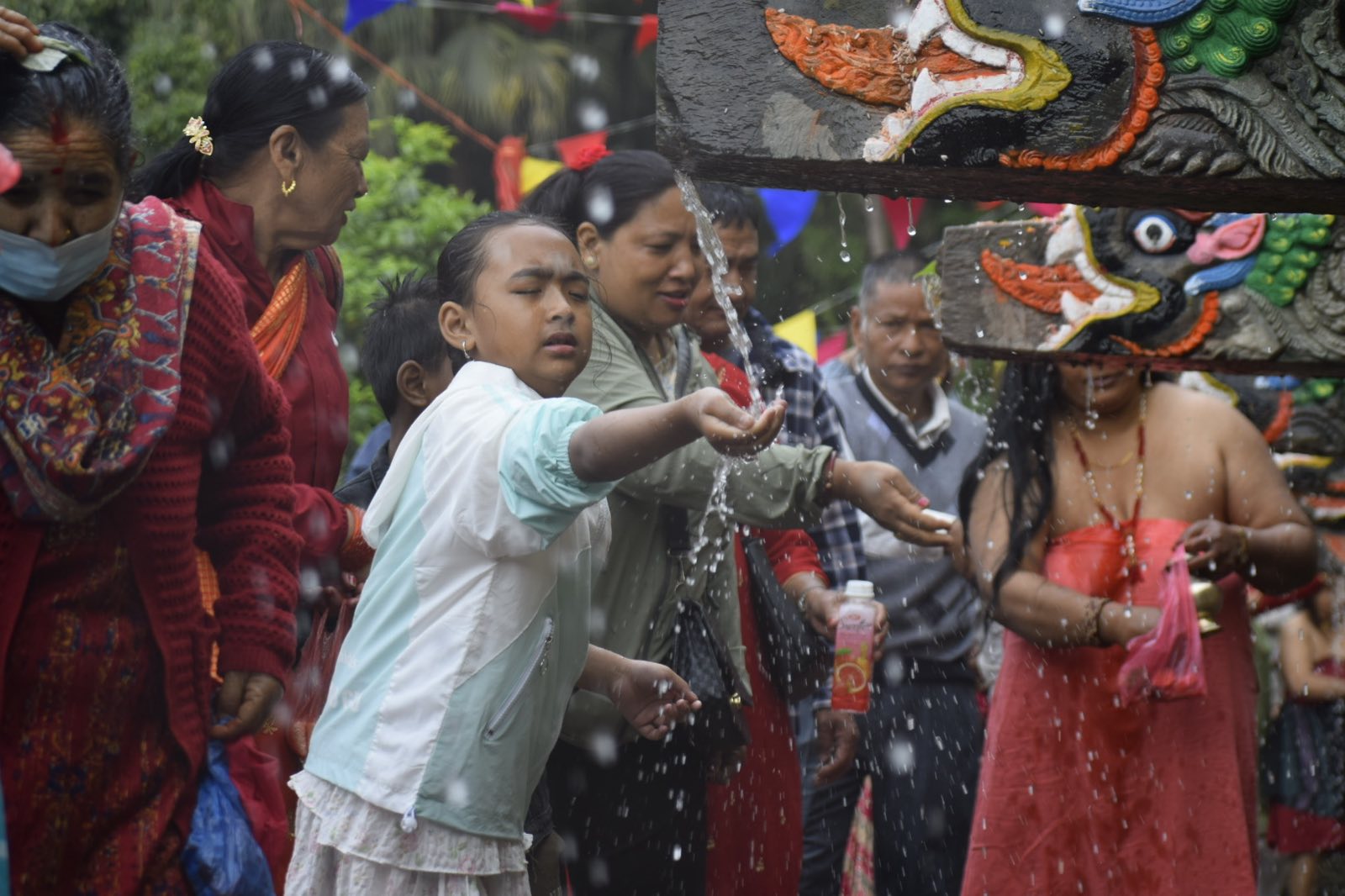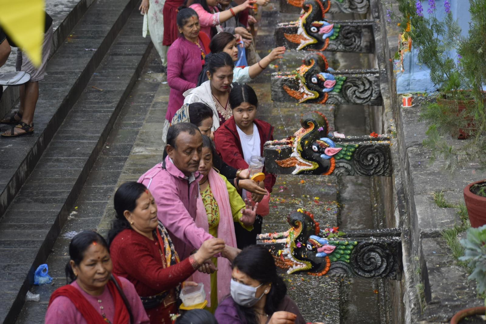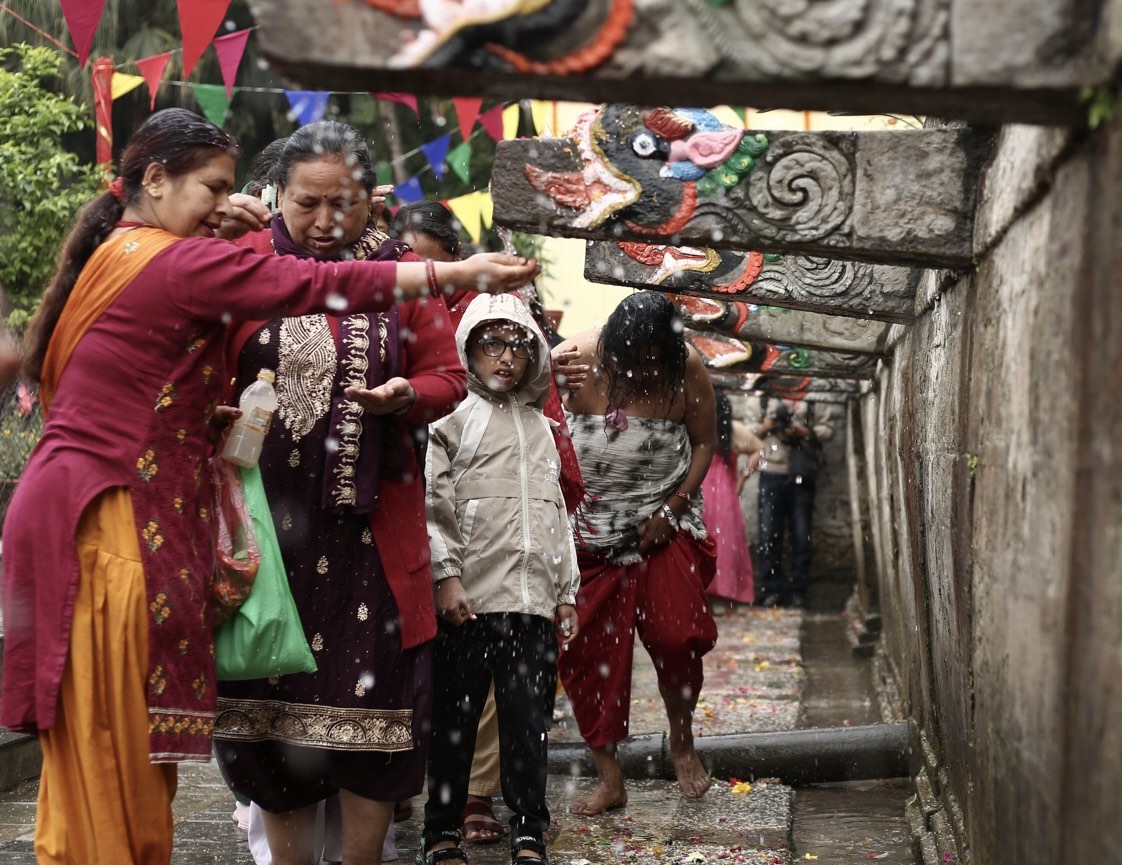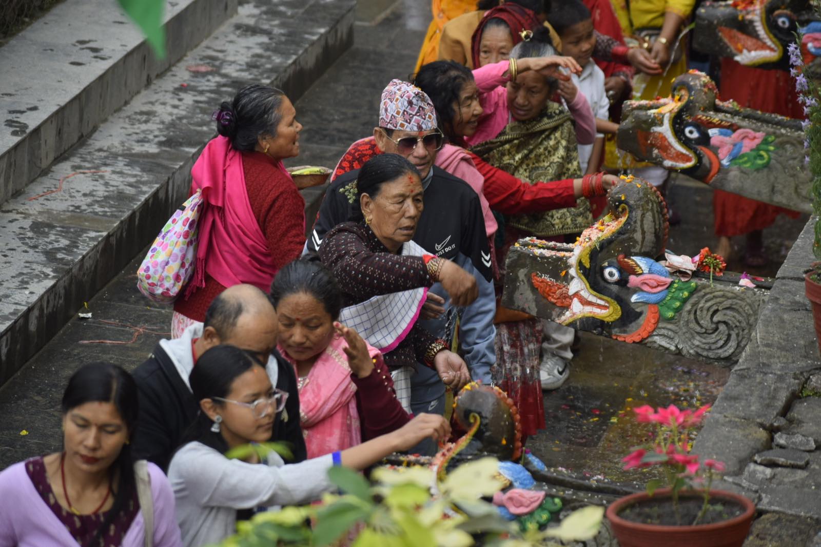 Hindu and Buddhist pilgrims took ritual baths under the 22 stone spouts (dhara), believed to purify the body and mind. Early morning saw long queues of devotees, young and old, waiting their turn to bathe in the sacred waters.