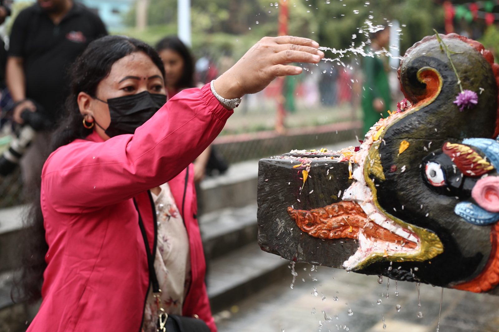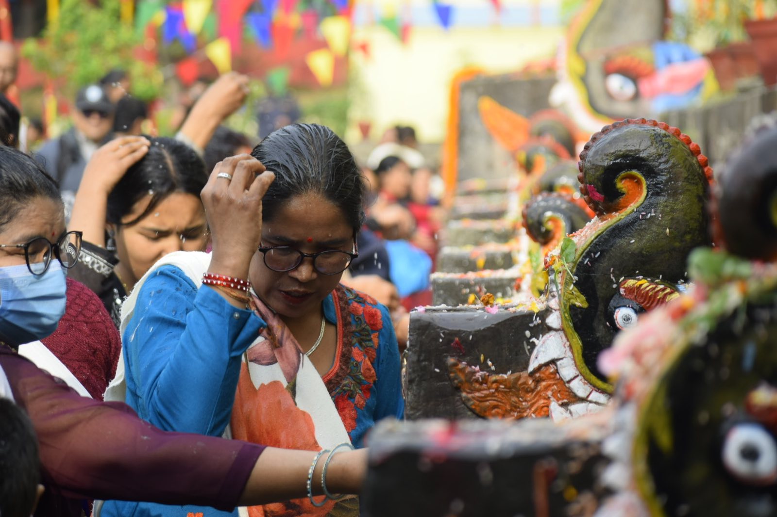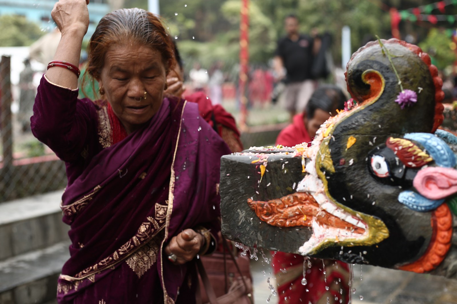 Hindu and Buddhist pilgrims took ritual baths under the 22 stone spouts (dhara), believed to purify the body and mind. Early morning saw long queues of devotees, young and old, waiting their turn to bathe in the sacred waters.