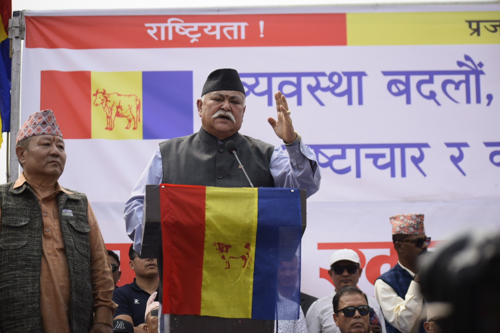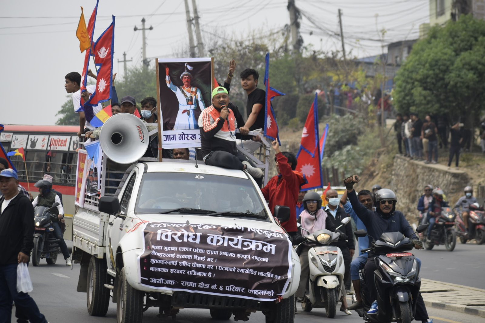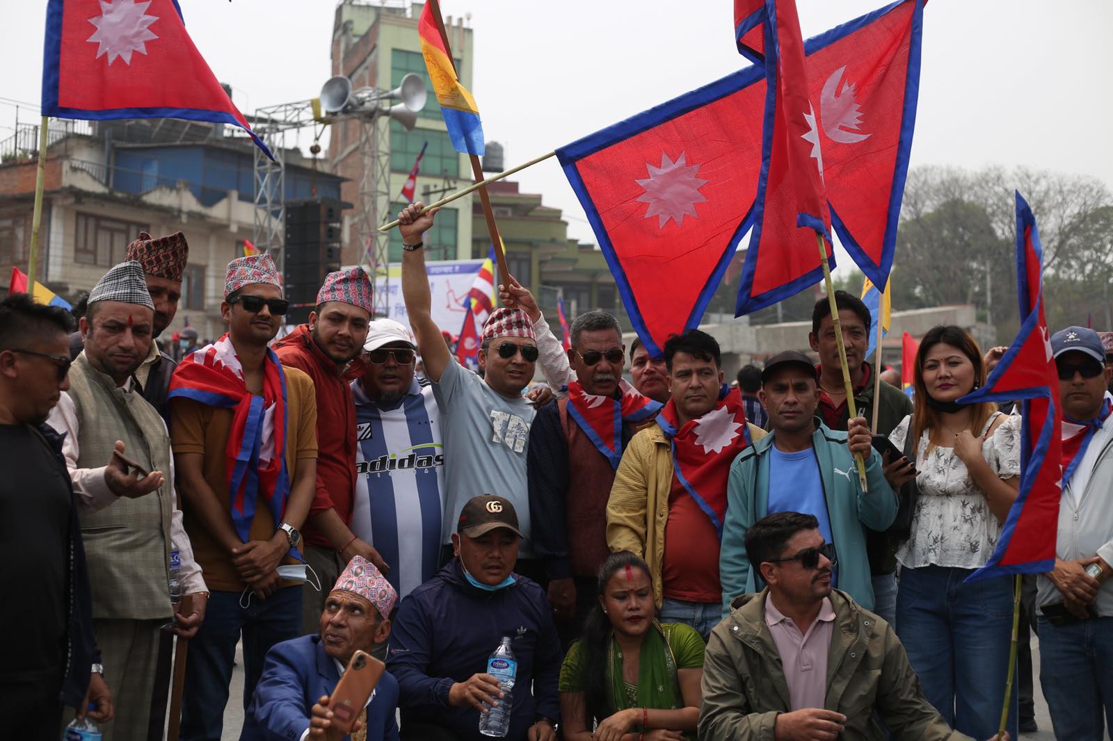 The protest is being held to demand the reinstatement of monarchy and revert Nepal as a Hindu state. RPP leaders are addressing the rally at the moment.