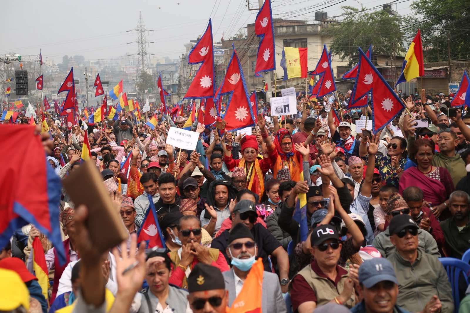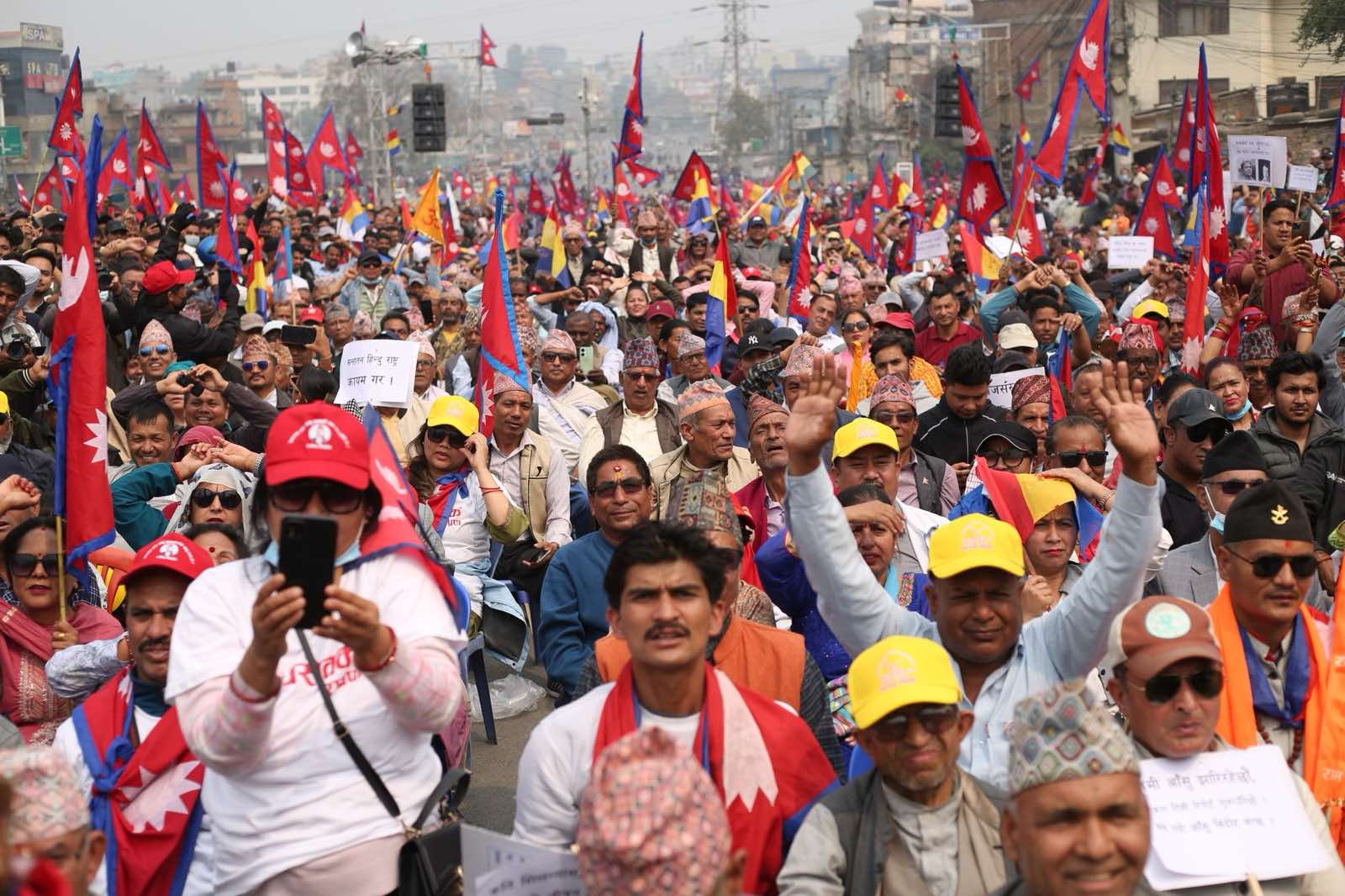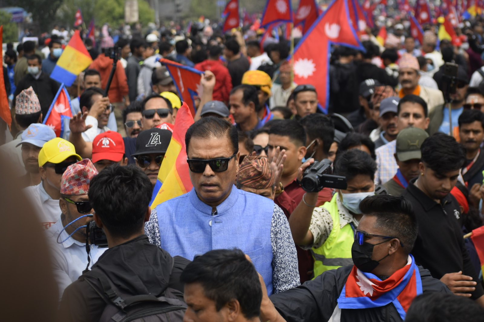 The protest is being held to demand the reinstatement of monarchy and revert Nepal as a Hindu state. RPP leaders are addressing the rally at the moment.