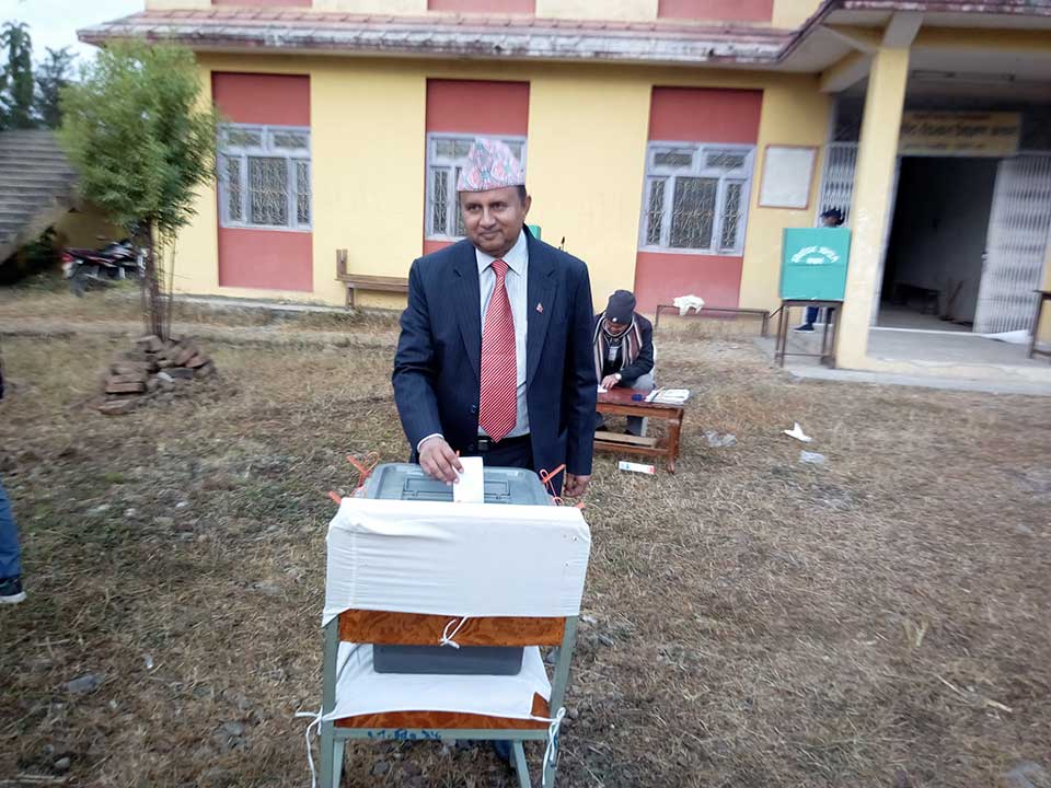 DANG, Dec 7: CPN-UML leader Shankar Pokherel has cast his vote from Vidhyapith polling center in Tulsipur Sub-Metropolitian city, Dang.