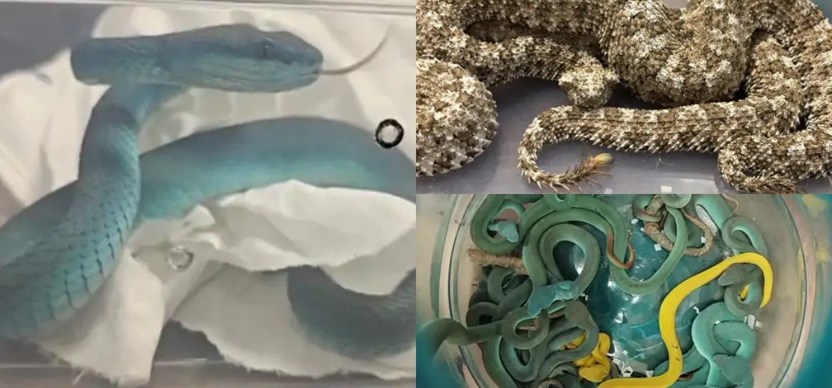The passenger, details of whom were not released, also had three Spider-tailed horned vipers -- which are venomous, but usually only target small prey such as birds -- as well as five Asian leaf turtles.
