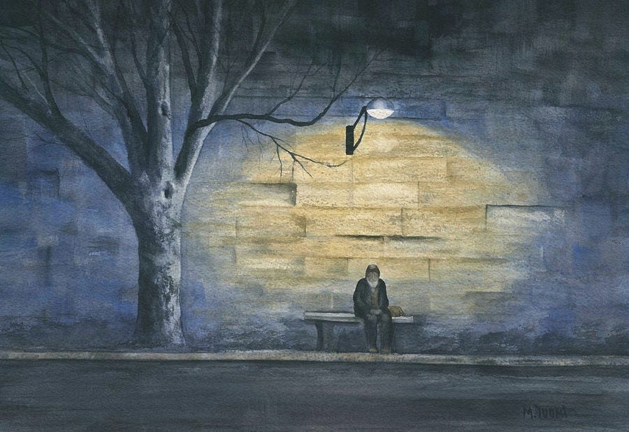 I remember how years ago he had taken his wife to hospital. I would never forget that rainy evening when he had returned home alone. Maybe those dark, roaring clouds had already been forecasting his life, his isolated life after the death of his wife. His memory of her, it seemed, gave him the strength to pull through the real world he was living in. Maybe he had forgotten everyone, except his wife. His sad eyes were actually missing her, longing to be with her. Maybe he was cursing his hunger since it was only the reason that he made him come out of the paradise of her memory. Also, his nocturnal wandering today made me feel different about him. I could sense this man was oblivious to the happenings of the world, since for him neither the day nor the night seemed to matter, as if time had shedded all its meaning. For him, neither the flow of the river mattered nor the perennial ticking of clock. Actually, he was isolated, isolated from the world that snatched away his wife.