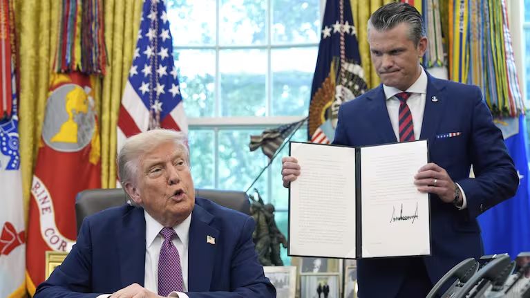 WASHINGTON, Sept 6: President Donald Trump moved Friday to rebrand the Pentagon, signing an executive order to revive the historic title “Department of War” in place of the “Department of Defense,” a symbolic shift that has stirred both praise and alarm, the Associated Press (AP) reported.