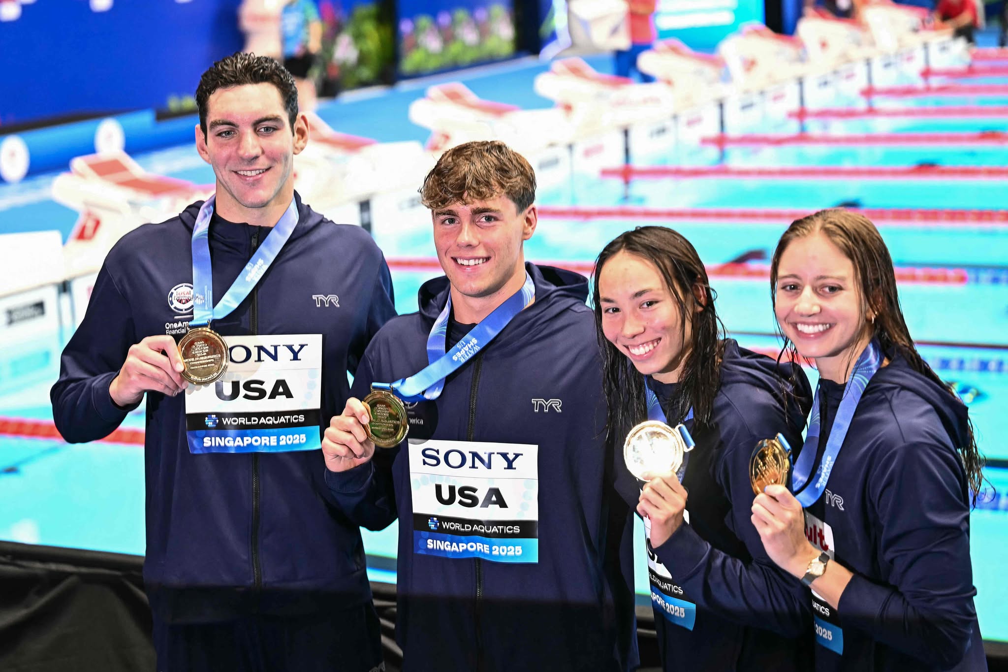The US team took gold in Singapore in 3min 18.48sec, beating Australia's previous leading time of 3:18.83 set in 2023.