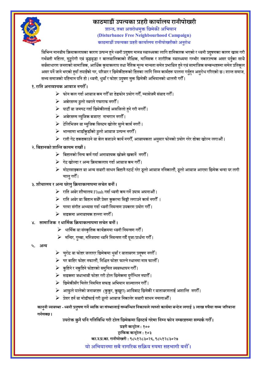 KATHMANDU, Sept 4: Citing rising noise pollution in the Kathmandu Valley, the Valley Police Office has launched a campaign urging residents to reduce unnecessary noise.